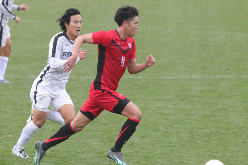 「4年生のために自分が何ができるかだと思っているので。数字でもチームを引っ張っていきたいですし。ハードワークして、チームの勝利に貢献したいと思っています」 / FW五木田季晋