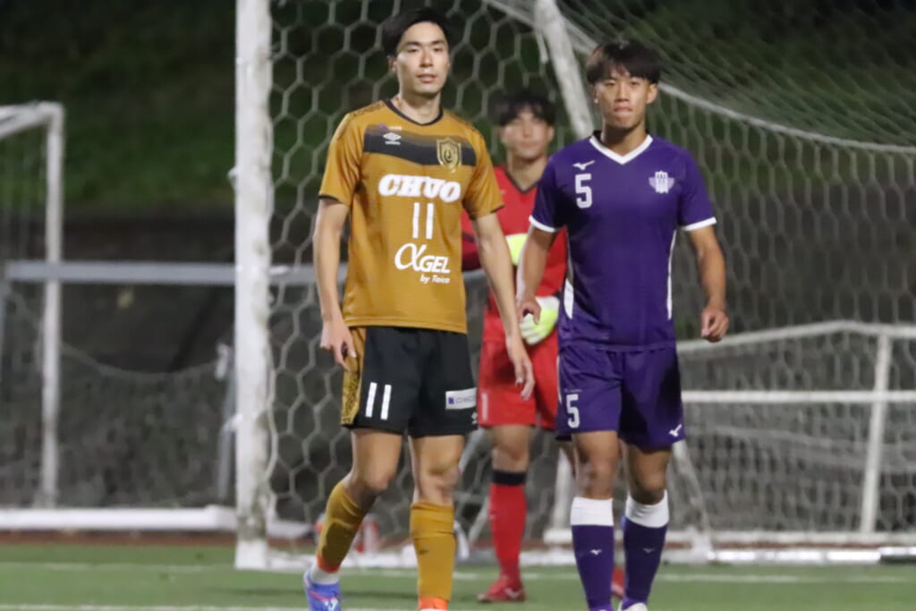 中央大は後半33分に横山俊介が決めて1点差とするも1-2でタイムアップ。シュート数では中央大が上回るも、勝利したのは明治大となりました。
