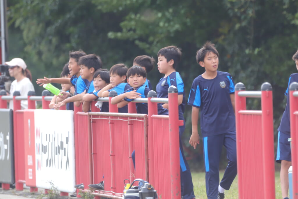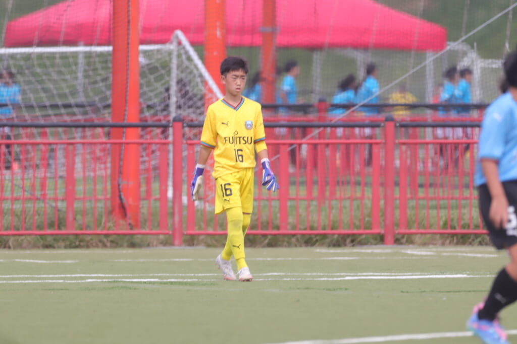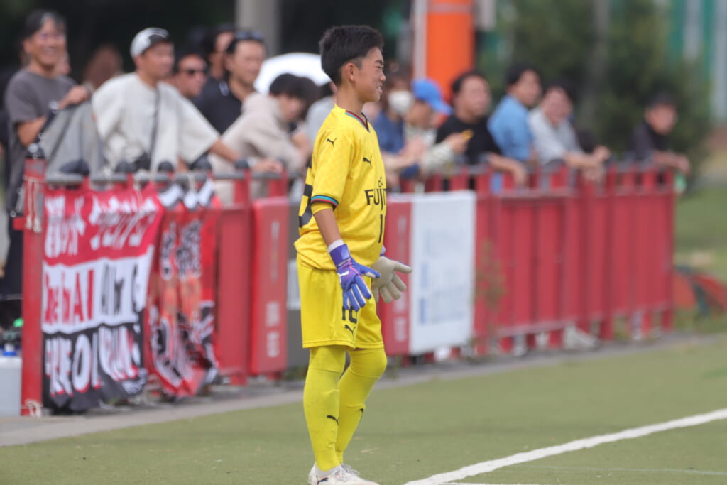 フロンターレの先発は、GKキャプテンの1チケ立野オケチュク、最終ラインは右から5下地勇人、3山村兜馬、6岡西春樹、ボランチは13戸部心暖、その前に7佐藤雄吾、10新堀葵、右に11桑原大河、左に4山本暖大、前線には9久保田創大、8浅井玲央。