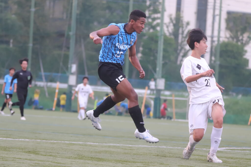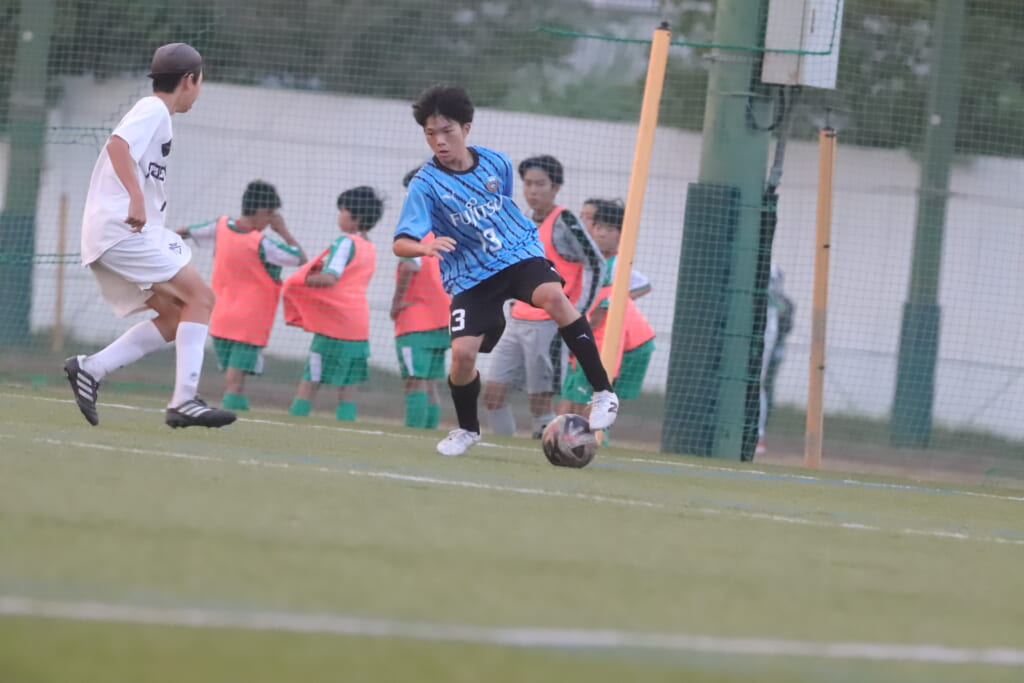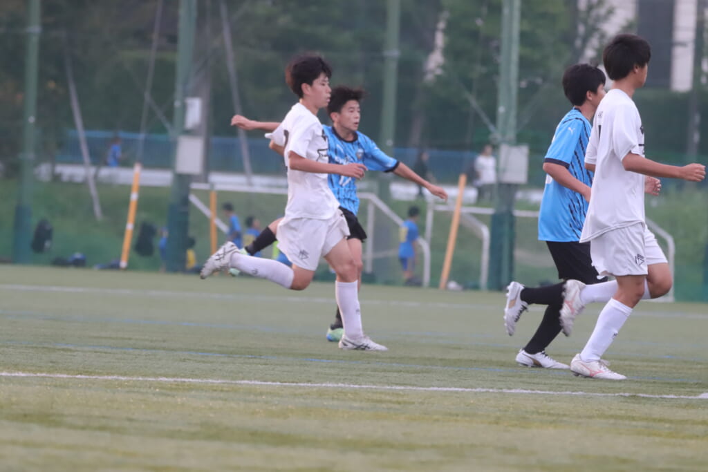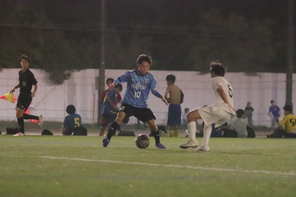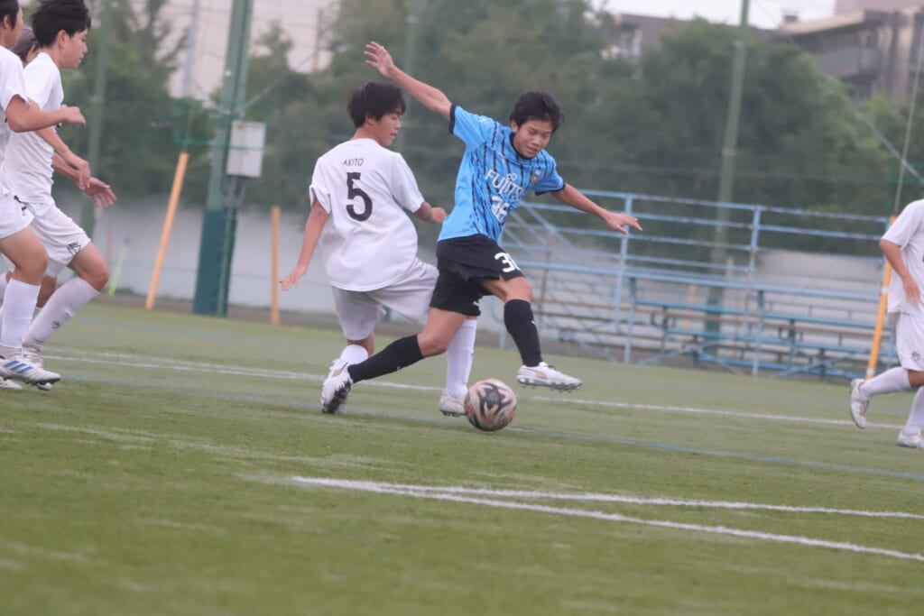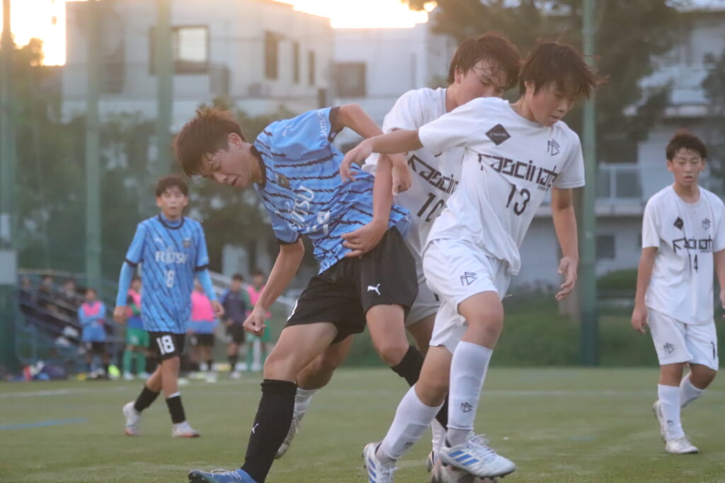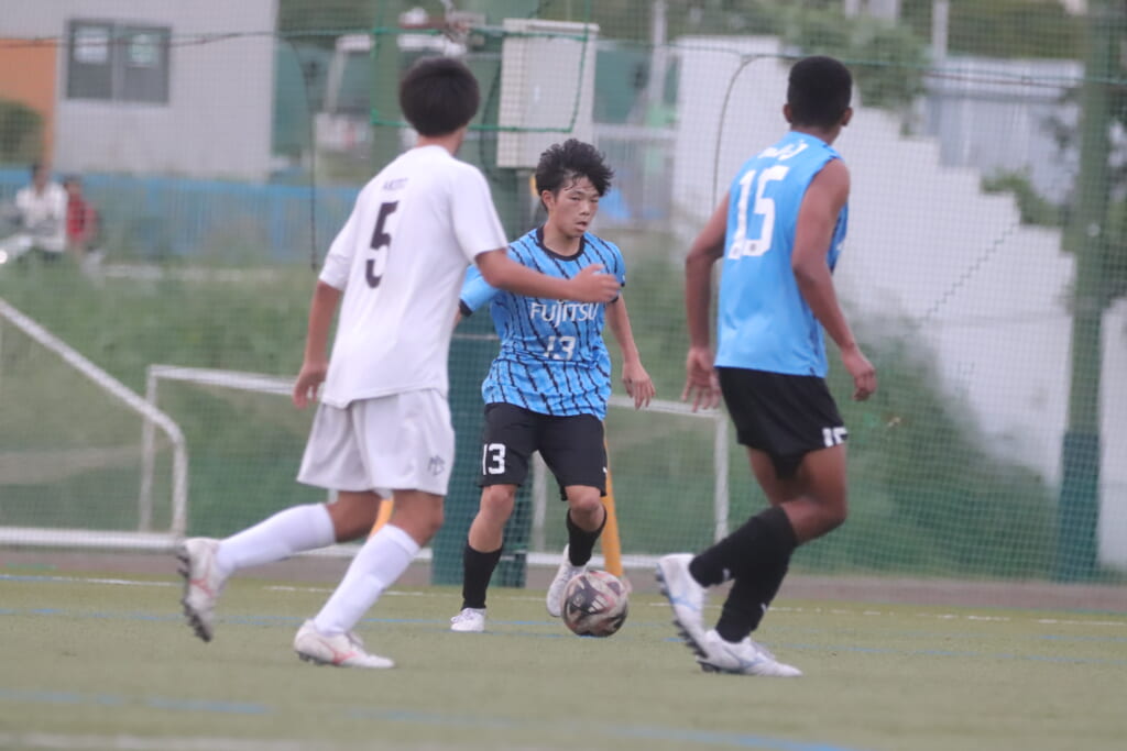 さらにフロンターレ等々力は、中央で遠山煌斗がうまく体を入れ、ボールをものにしていきますが、ファサネイトも粘り強く奪い返す場面をつくり、19分には2がパス交換からエリア正面へ。しかし、それをしのいだフロンターレ等々力は、下がり目でオガーが受けキープを図りますが、オフサイドに。
