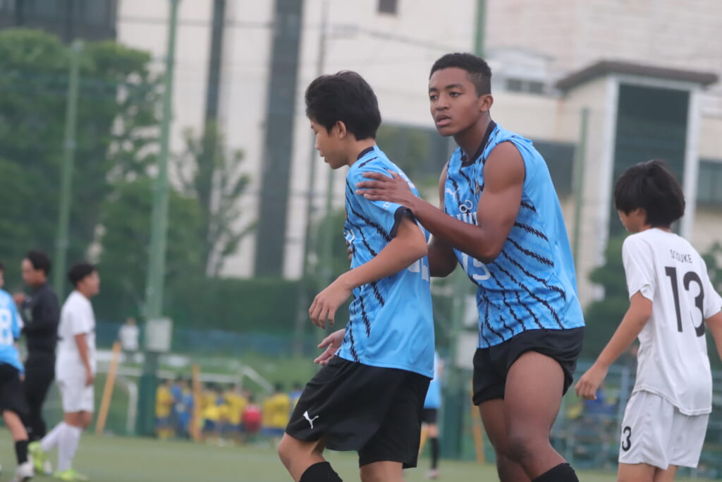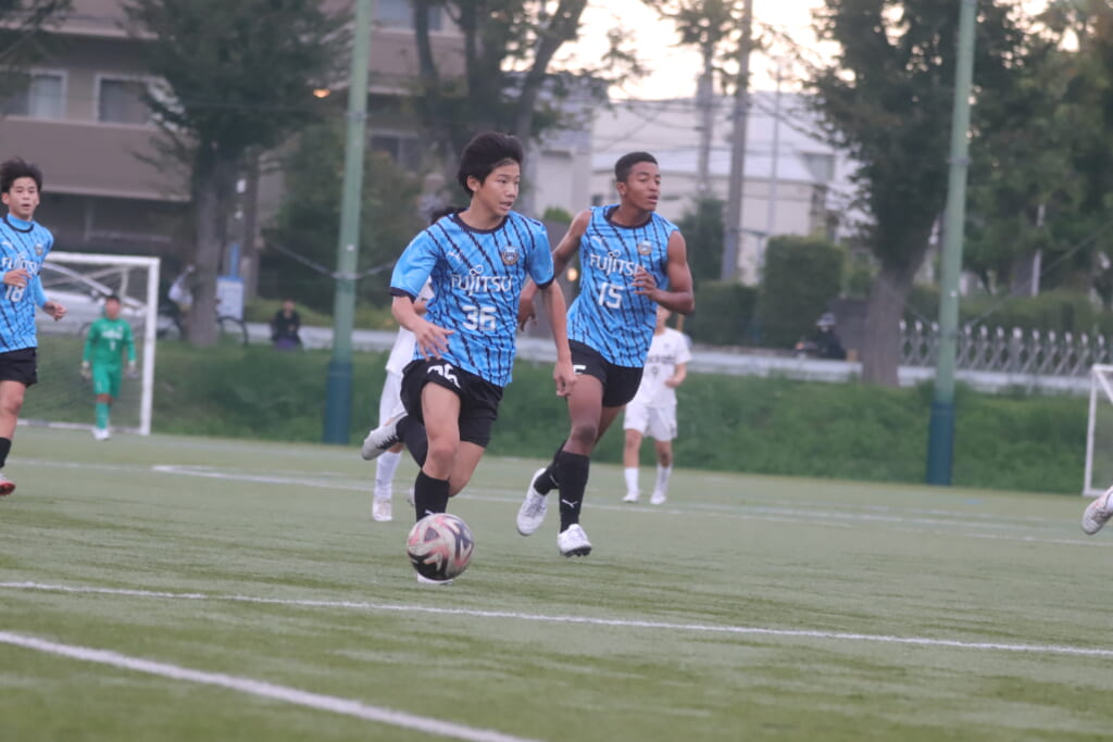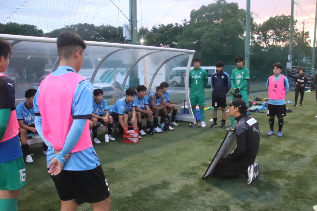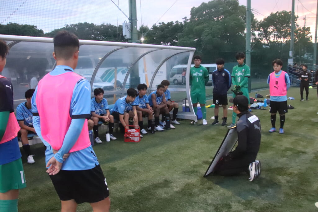 15分には、フロンターレ等々力、野田、遠山煌斗、大寺、オガーが下がり、2年生の32永田怜大、10初音虎次郎、5坂西叶羽、11林凜太朗。