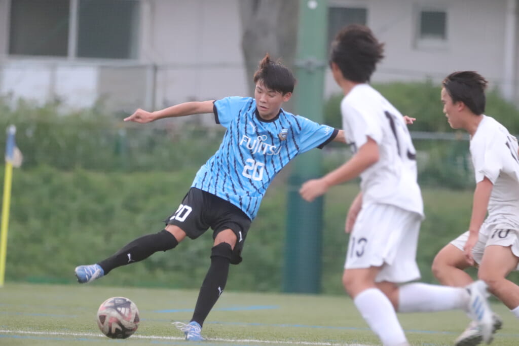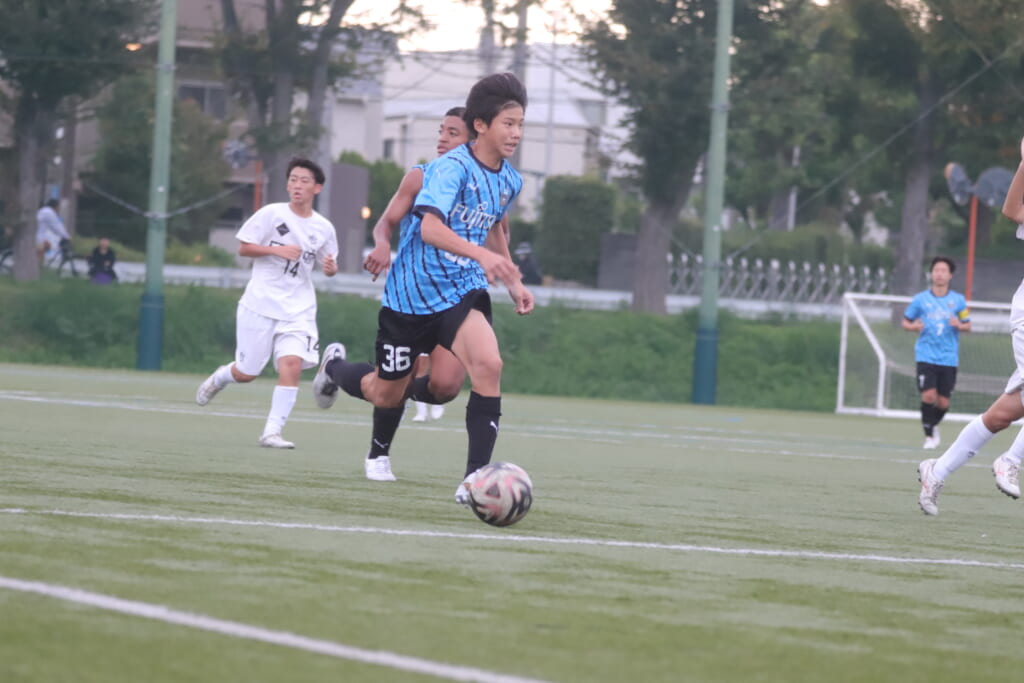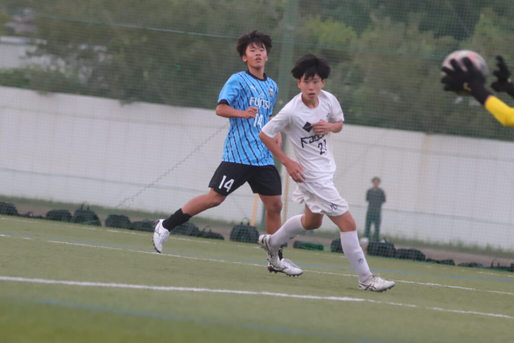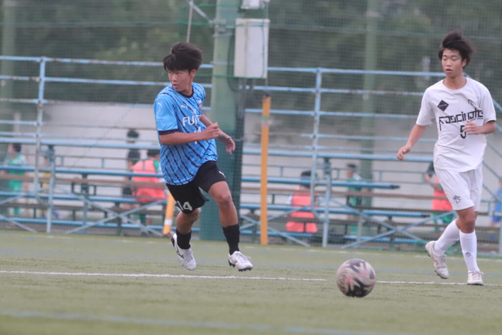 木田から野田、野田から再び木田へつながり、木田から受けた笠原は左サイド、高い位置へ。ここはファサネイト、4、 7の対応に遭うも、6分には右サイドへ展開したフロンターレ等々力。遠山頼斗のスルーパスに、エリア右抜け出したのは大寺。シュートを打つとこれが決まり、1-0。