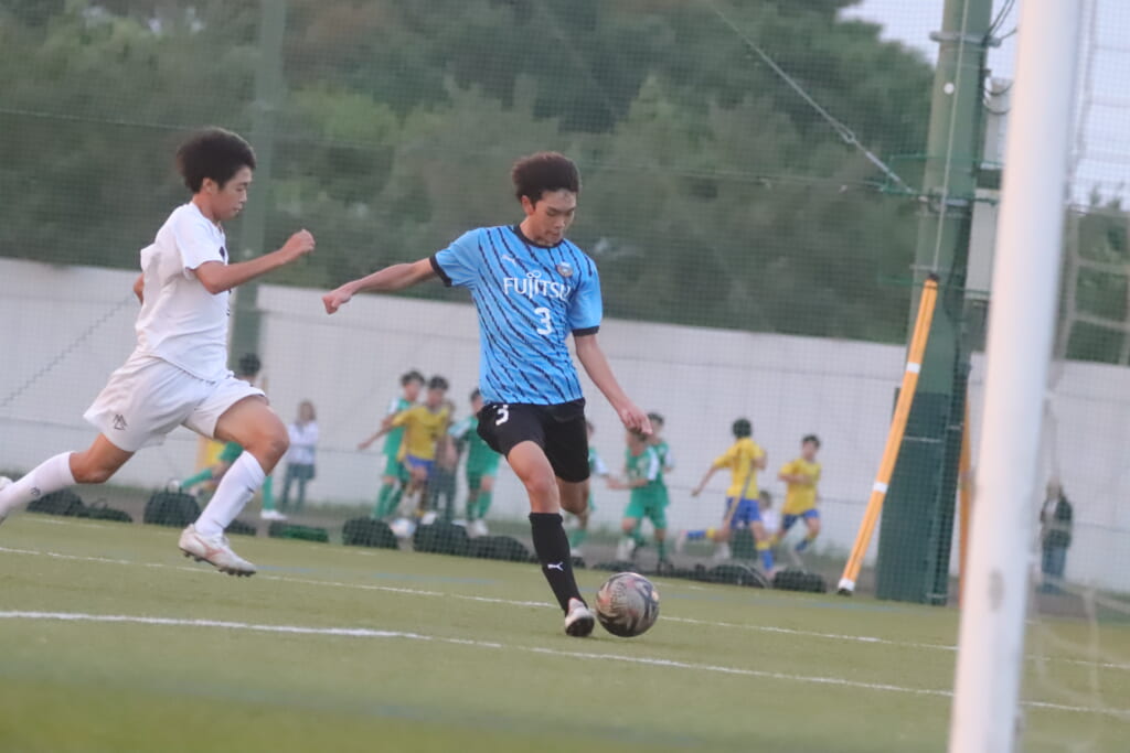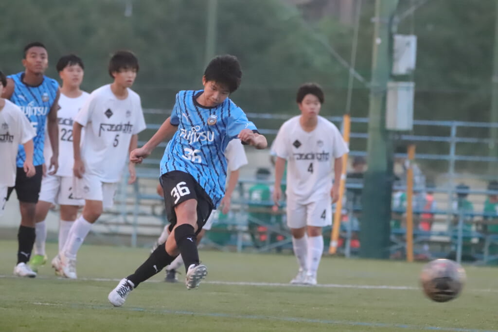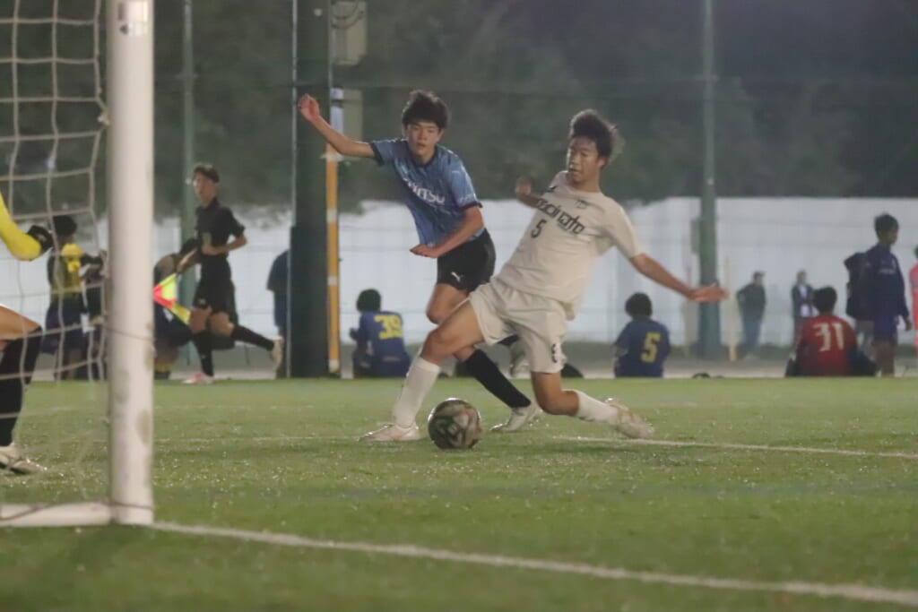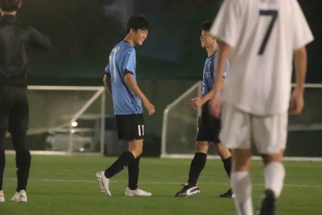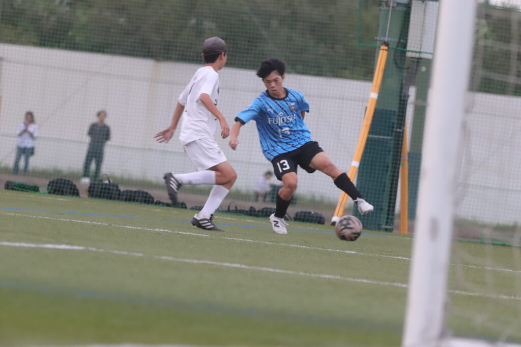 木田から野田、野田から再び木田へつながり、木田から受けた笠原は左サイド、高い位置へ。ここはファサネイト、4、 7の対応に遭うも、6分には右サイドへ展開したフロンターレ等々力。遠山頼斗のスルーパスに、エリア右抜け出したのは大寺。シュートを打つとこれが決まり、1-0。