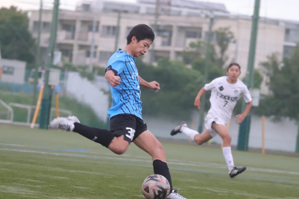 すると26分には、フロンターレ等々力、初音が右サイドから正面へ持ち込み、その落としからエリア外正面、坂西がミドルシュートを打つと、最後は林が決めて、4-1。フロンターレ等々力が突き放します。