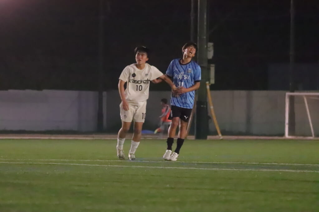 直後には林がおさめ、初音につなげると初音のパスに永田がエリア左へ。シュートは右にそれ、得点とはなりませんでしたが、立て続けにフロンターレ等々力がチャンスをつくっていきます。