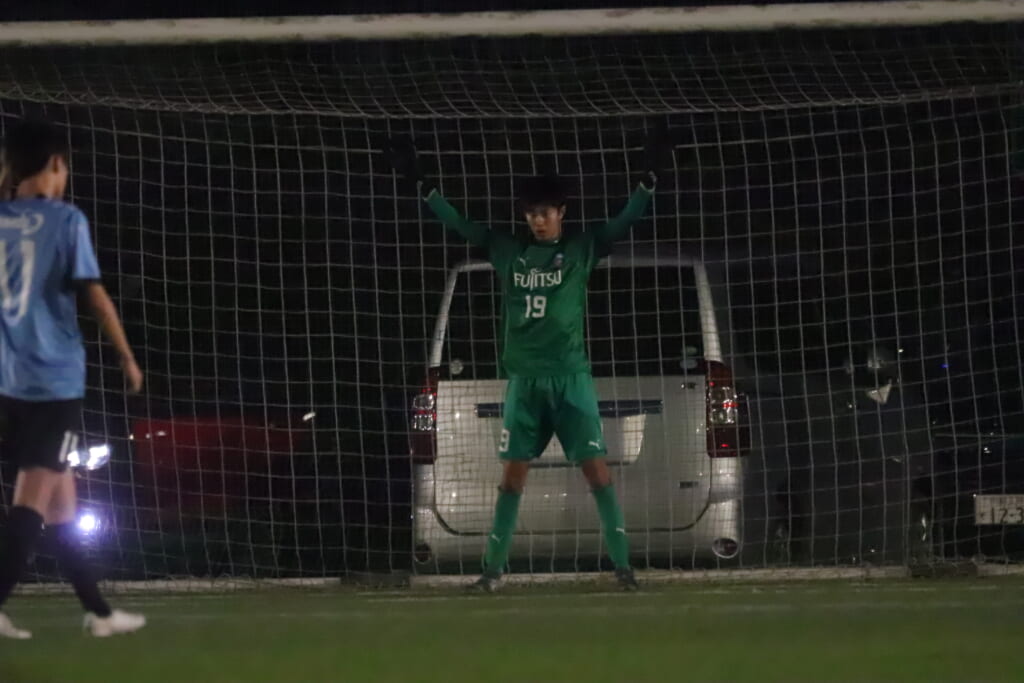 すると直後にはフロンターレ等々力、初音のパスに、左サイド、抜け出した笠原は左クロス。ヘディングで合わせたのは林。