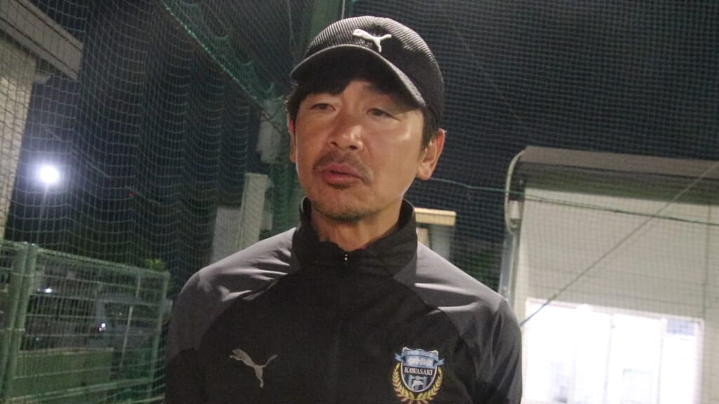 10月18日等々力第一サッカー場で行われた神奈川県(U-15)サッカーリーグ2部第16節、FASCINATE JY戦を4-1で勝利、優勝まであと1勝に迫った川崎フロンターレU-15等々力(3年)。試合後に玉置晴一監督、ゴールを決めたFW11林凜太朗、FW15オガー悠仁、2年生のMF36大寺楓真の3選手に話を聞きました。