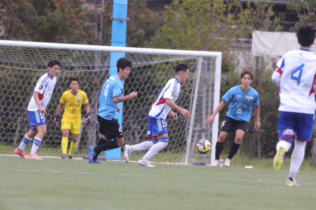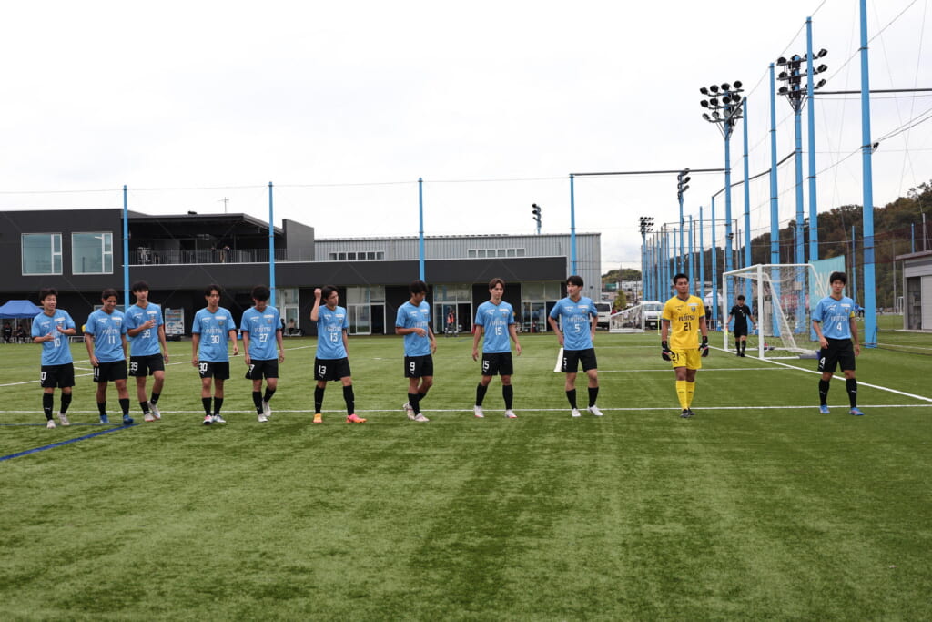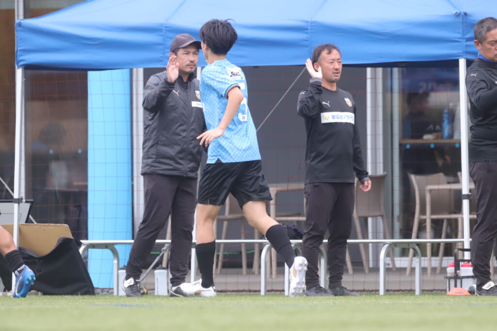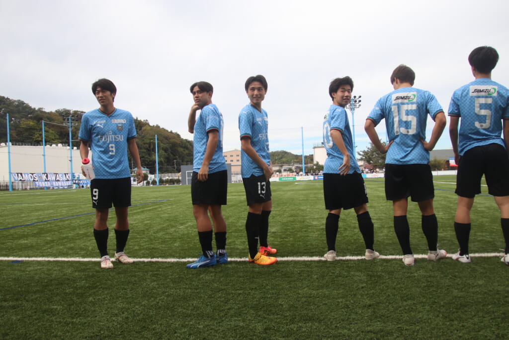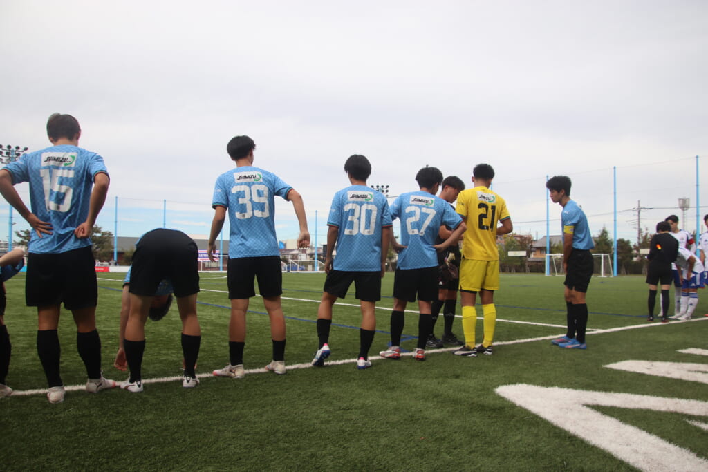 先発は、GK1鈴木魁、最終ラインは右から12平野遼、3齋藤仁、キャプテンの4奥寺湊、33草野陸、ボランチは35相良瑚瑶、8加藤海輝、右MF11松田康太郎、左MF42齊藤芭流、トップ下19小幡志雄、前線には18田中陽瑛。
