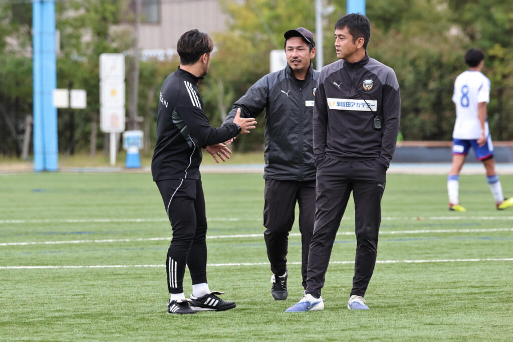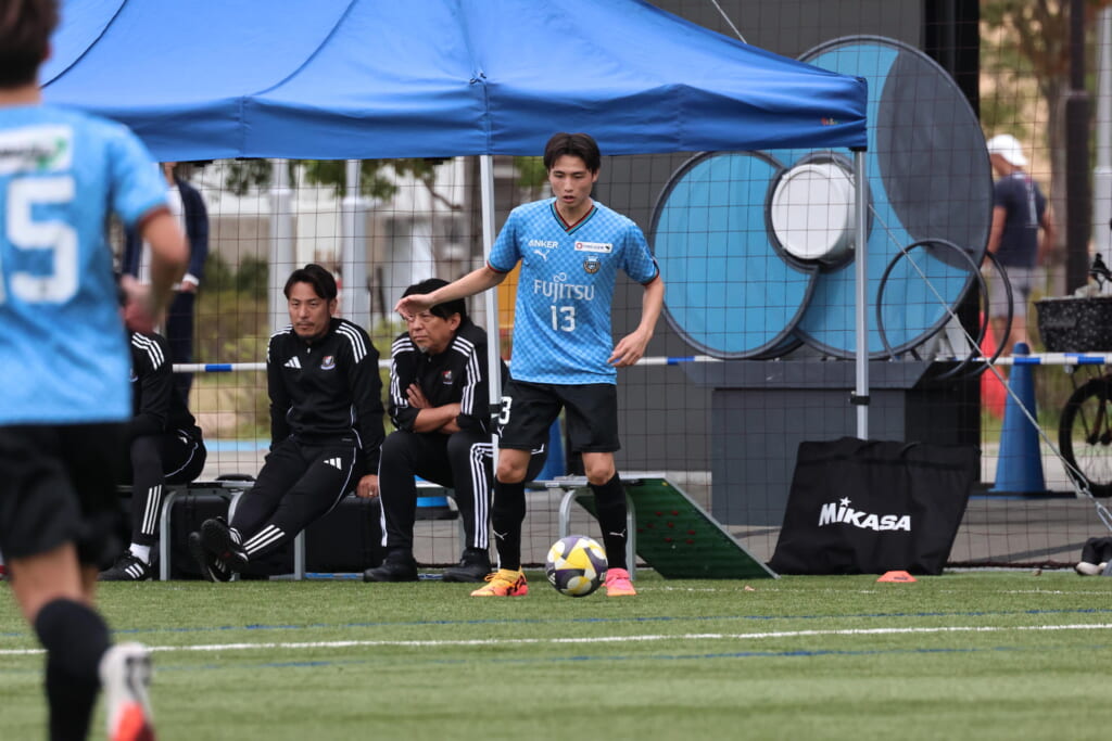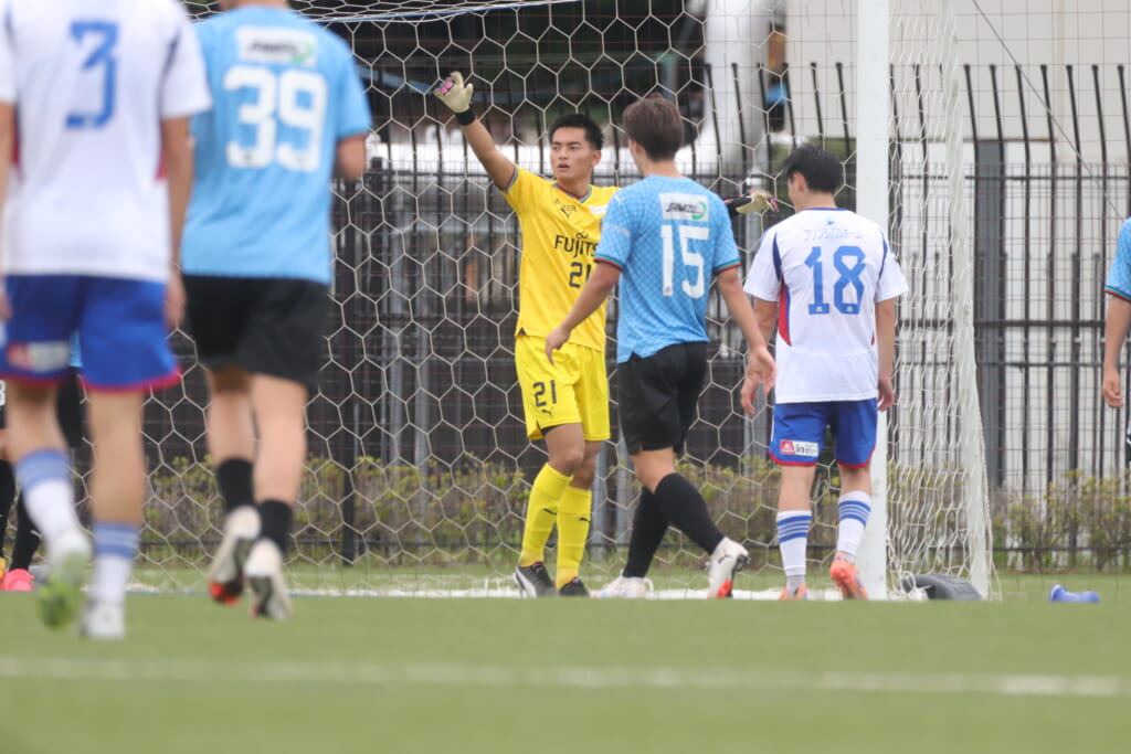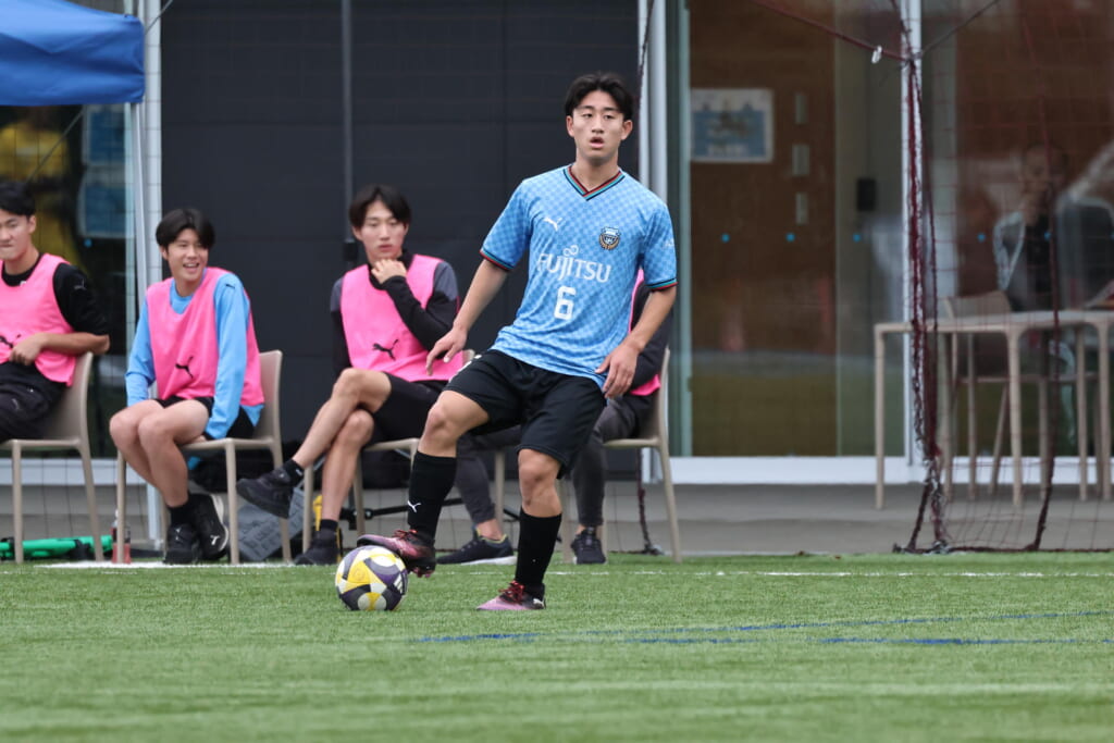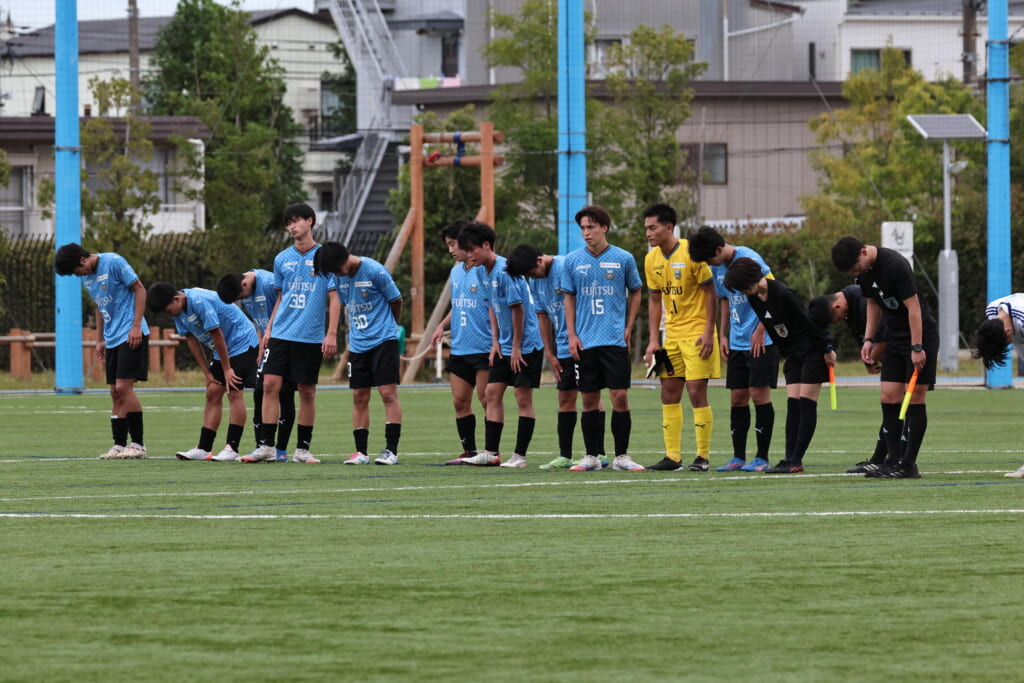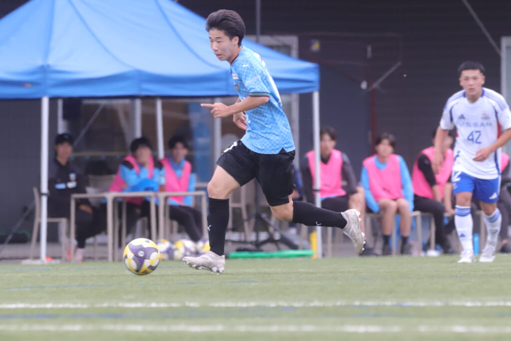 先発は、GK1鈴木魁、最終ラインは右から12平野遼、3齋藤仁、キャプテンの4奥寺湊、33草野陸、ボランチは35相良瑚瑶、8加藤海輝、右MF11松田康太郎、左MF42齊藤芭流、トップ下19小幡志雄、前線には18田中陽瑛。