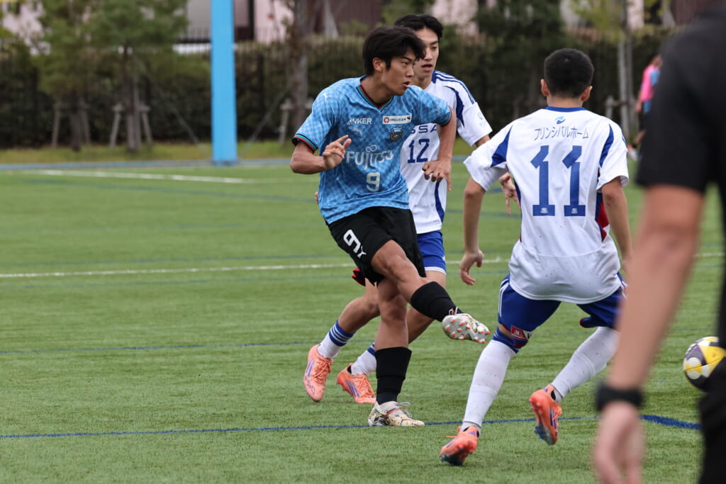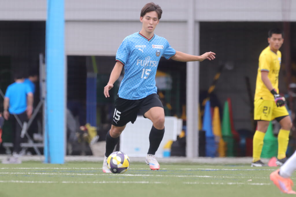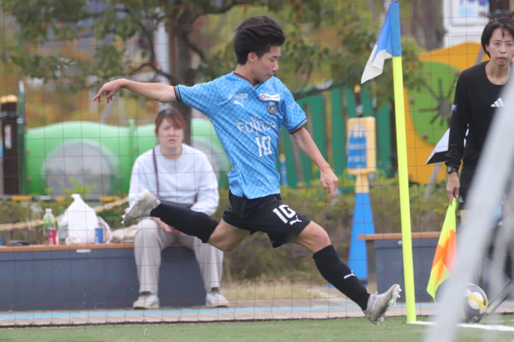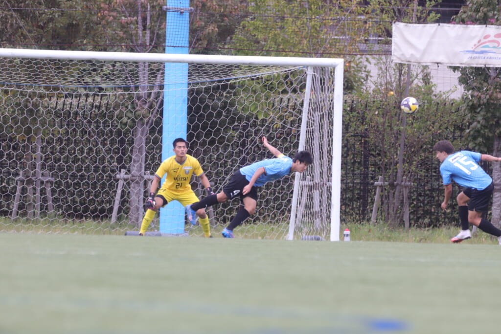 しかし、直後にもフロンターレ、柏村が右クロスを入れると、エリア内、飛び込んだのは恩田。ヘディングシュートが決まり、2-1。