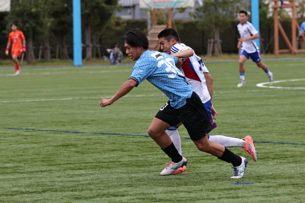 齋藤仁から間で受けた加藤が前に持ち込んでいきますが、川西が粘り強く足を伸ばし、対応していきます。
