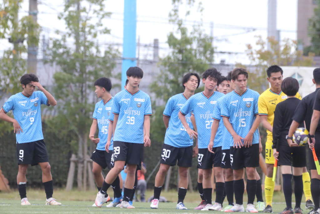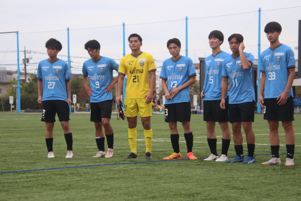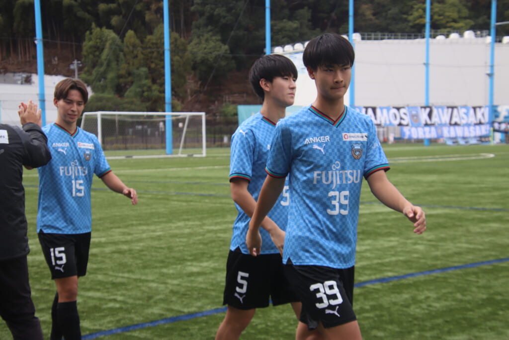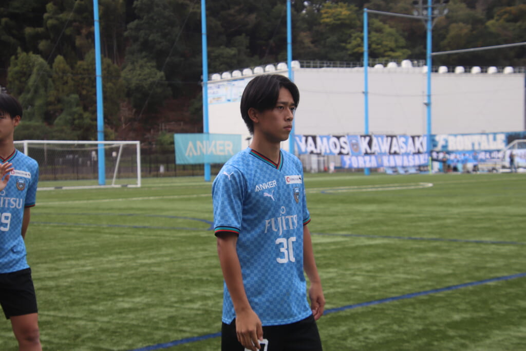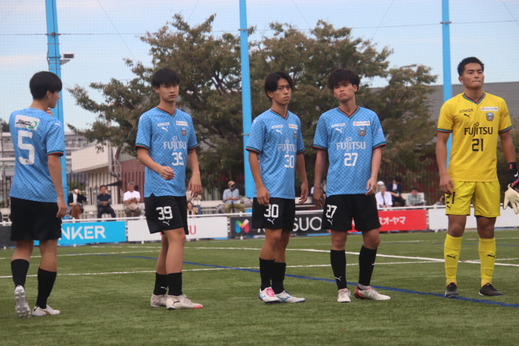 フロンターレの先発:21岡本栞汰 13柏村涼太 5楠田遥希 15ペイシェンス海翔 30川西悠太 4林駿佑(c) 27坂井暉絃 39西川航雅 11ステンパールカ大翔 10平塚隼人 9恩田裕太郎