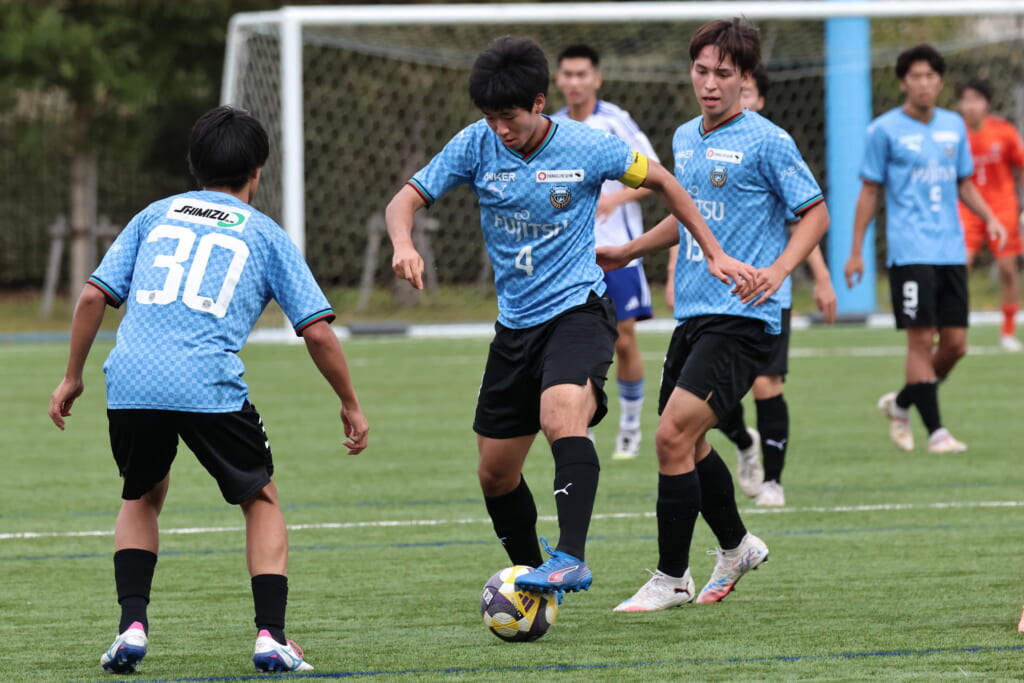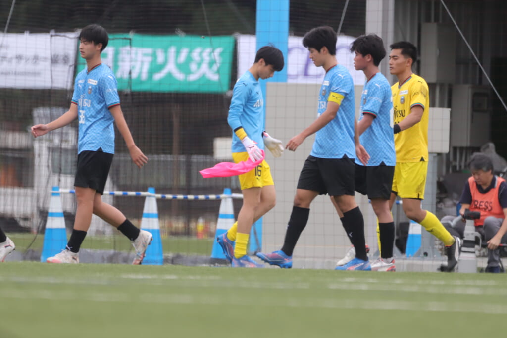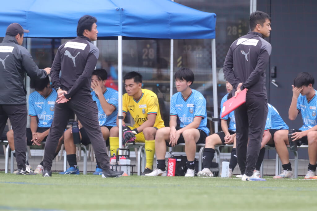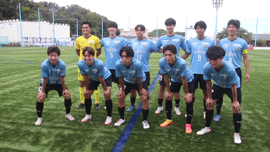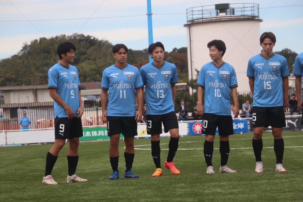 フロンターレの先発:21岡本栞汰 13柏村涼太 5楠田遥希 15ペイシェンス海翔 30川西悠太 4林駿佑(c) 27坂井暉絃 39西川航雅 11ステンパールカ大翔 10平塚隼人 9恩田裕太郎