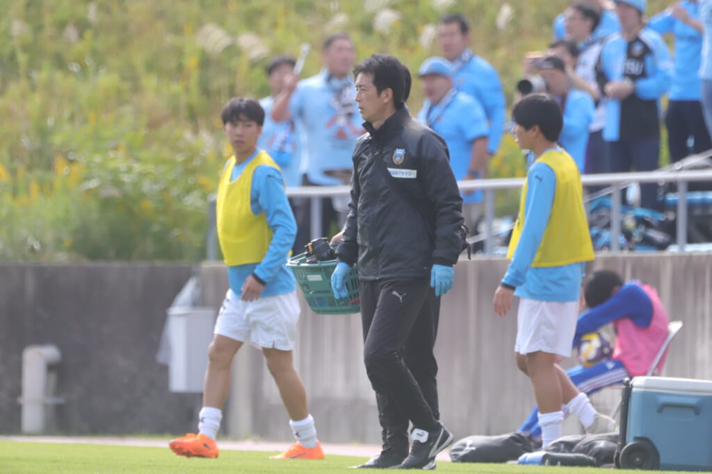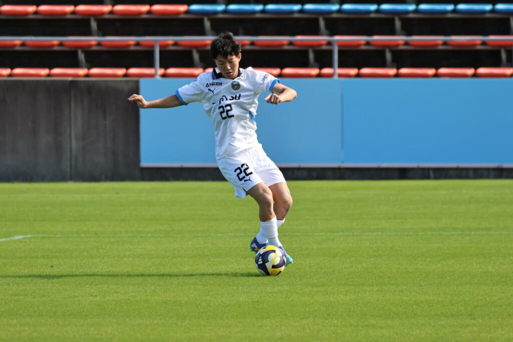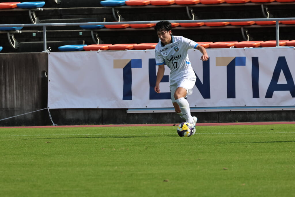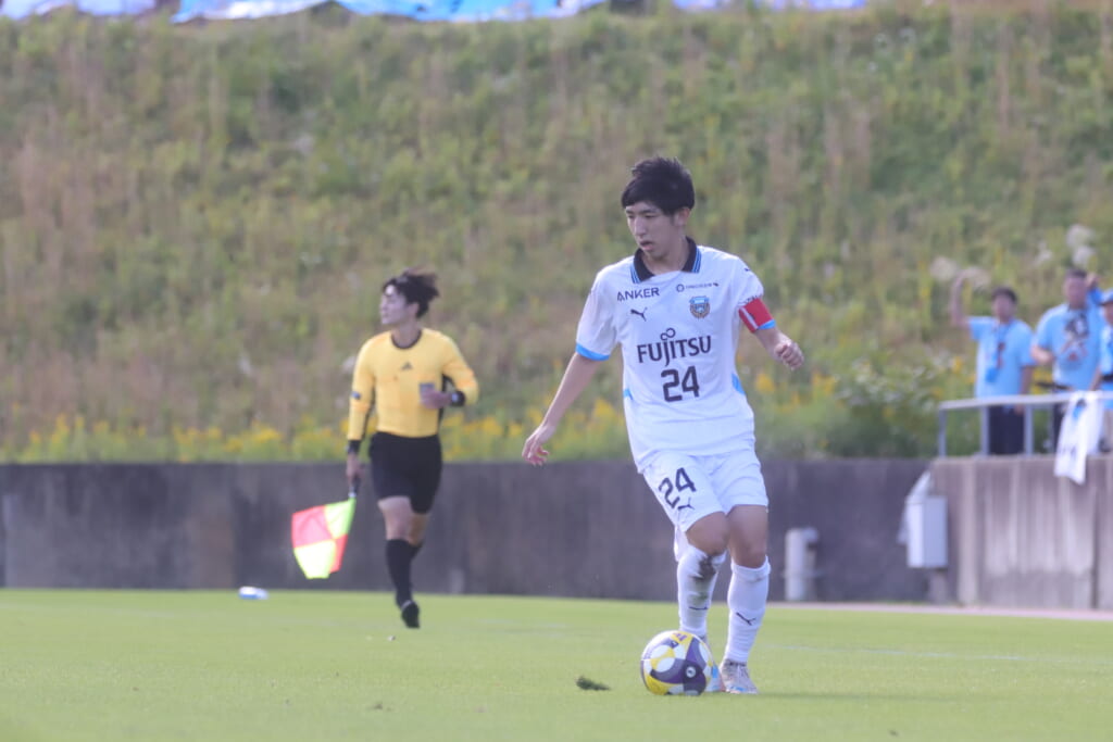 フロンターレは16分廣瀬に代わり32加藤昊が入りボランチ。小田が右MF、川村が前線へ。