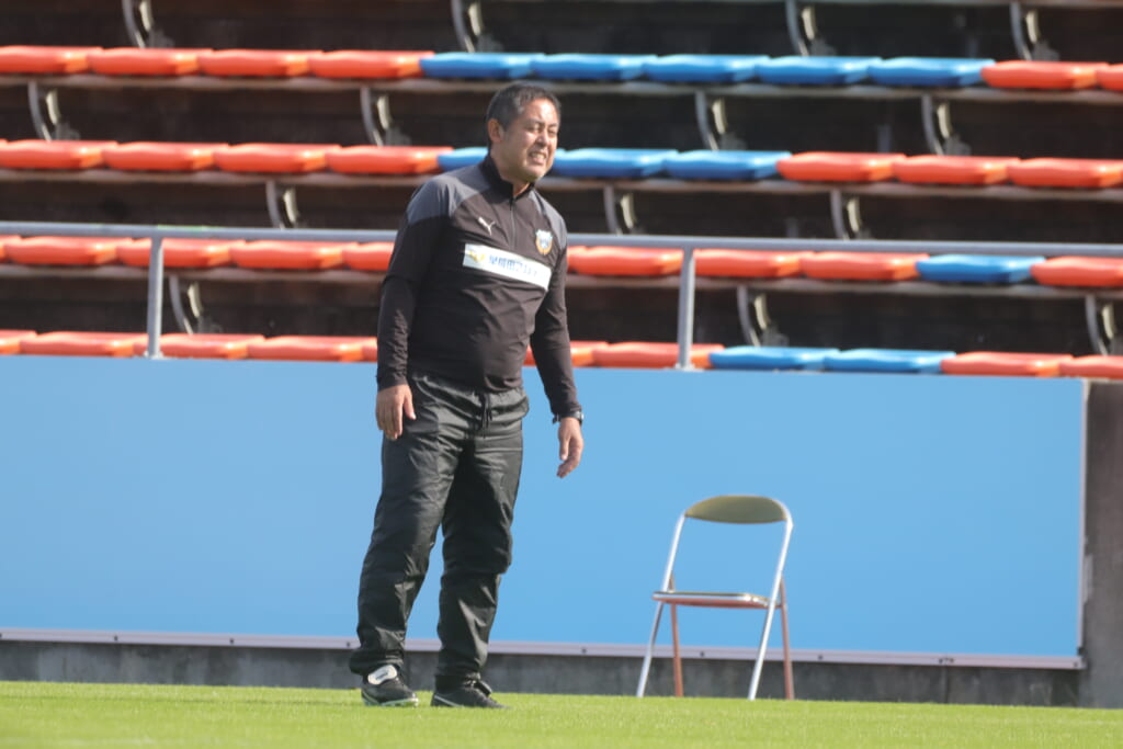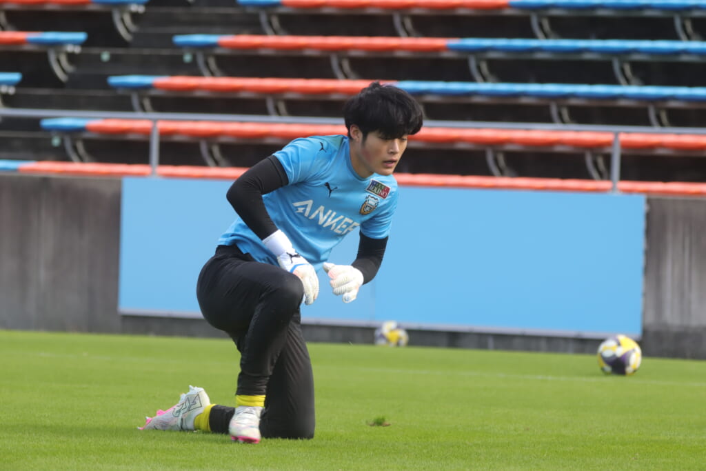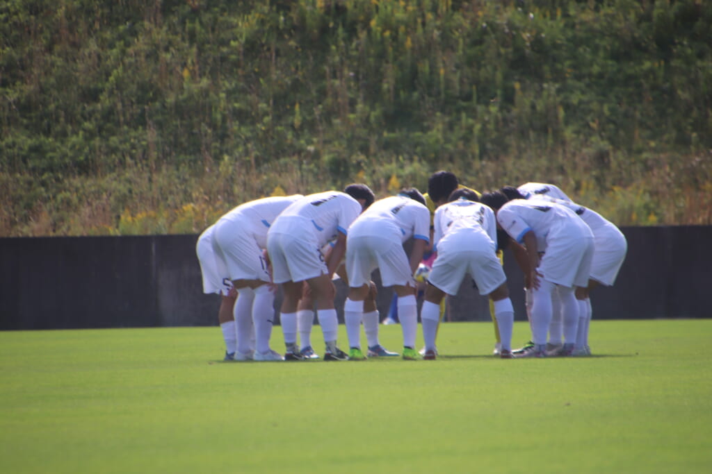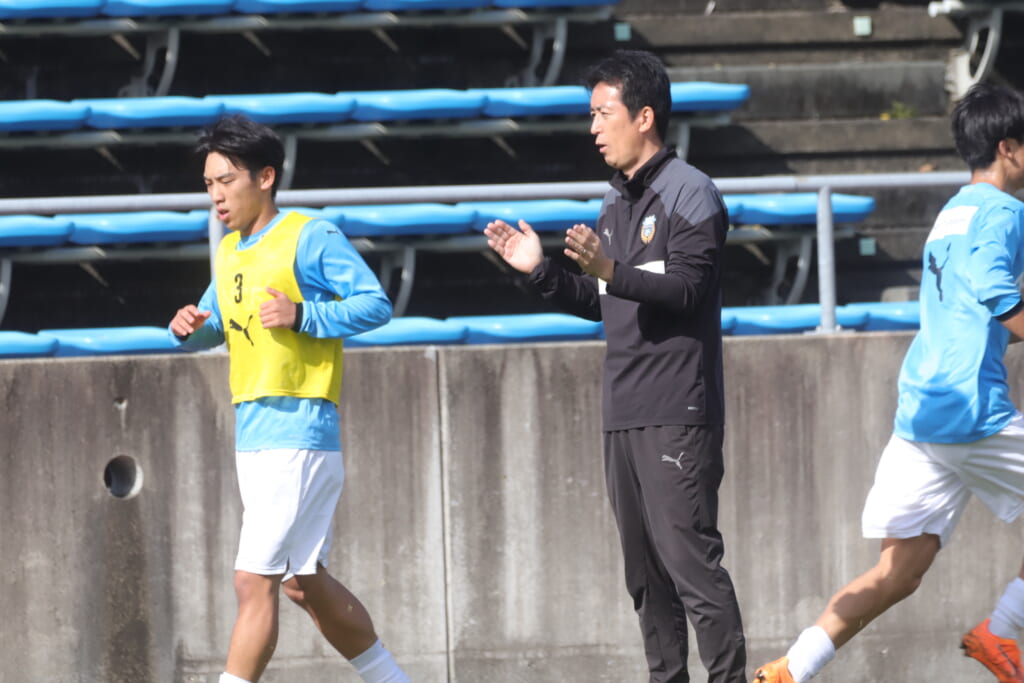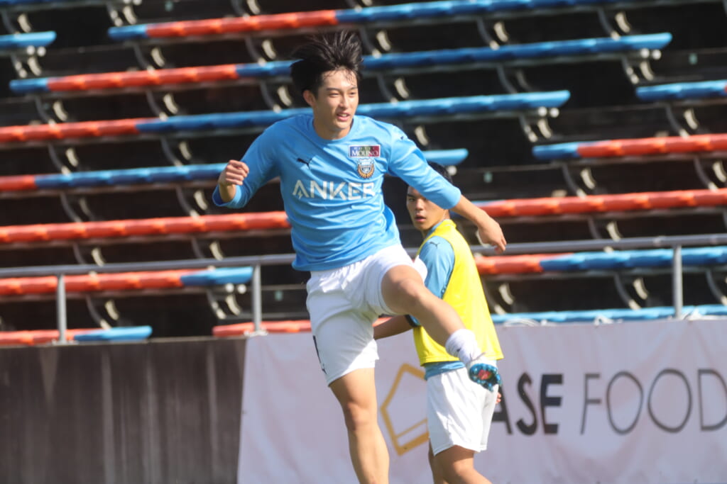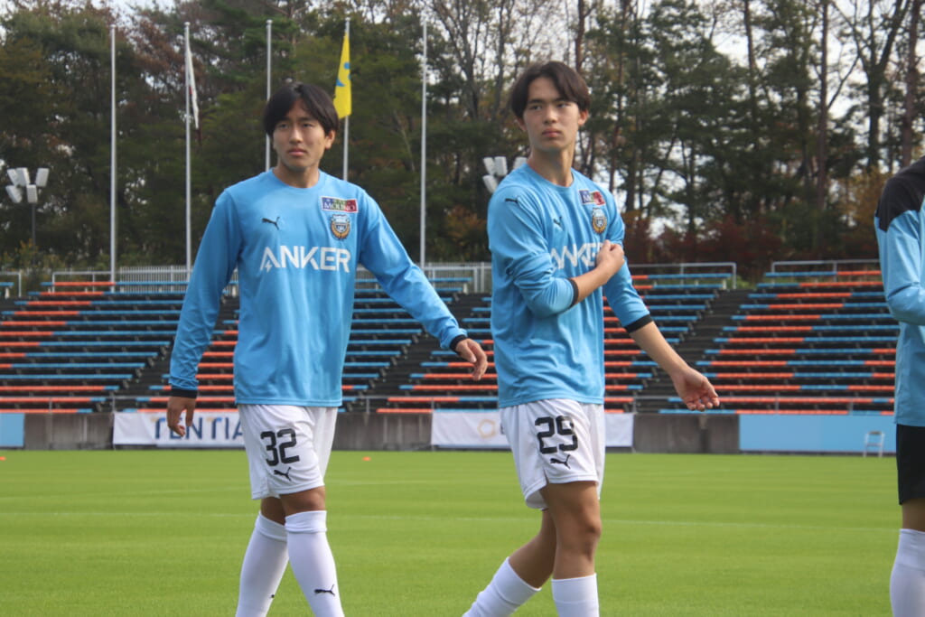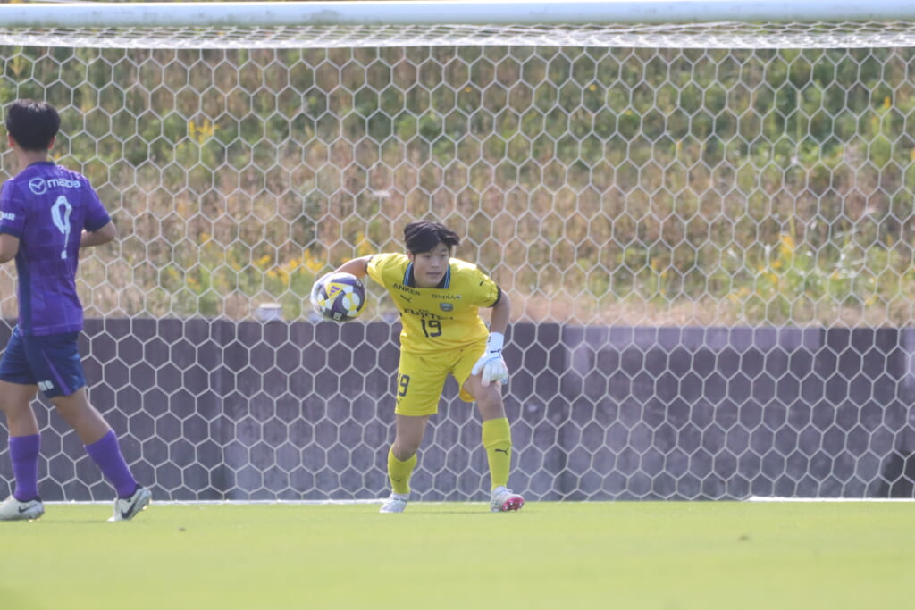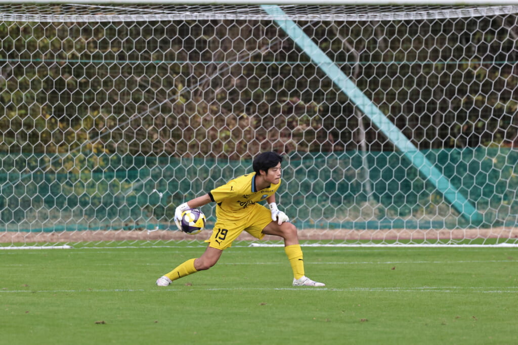 先発は、GK19岩田幹太郎、最終ラインは右から25小川翔太、22山川陽平、28笹倉拓真、キャプテンの24長崎亘佑、ボランチは31小田脩人、29今廣遥碧、右MF17廣瀬寧生、左MF20三上瑛大、前線には38全天海、36川村求。