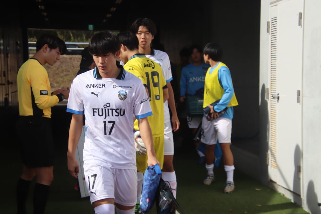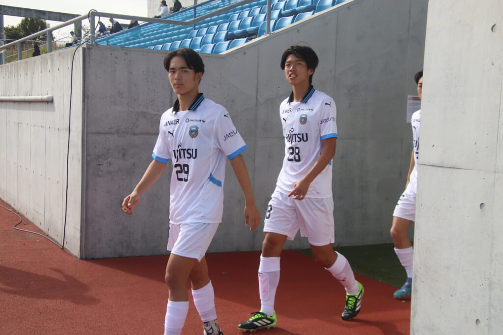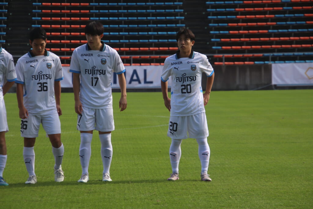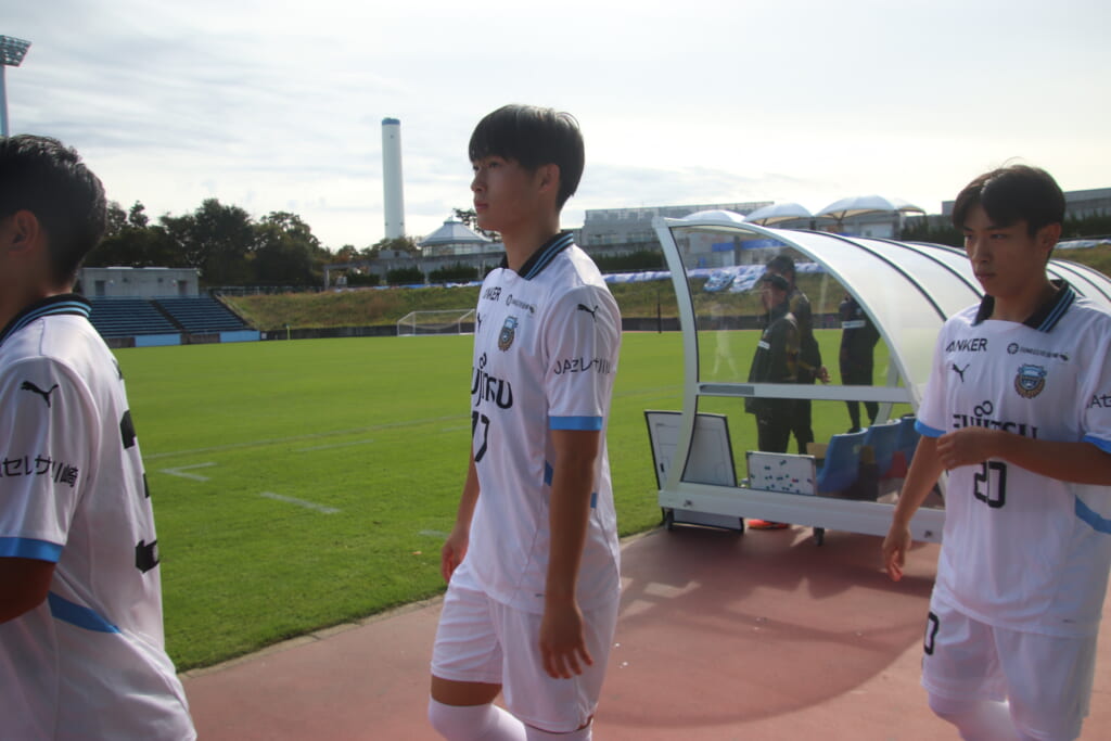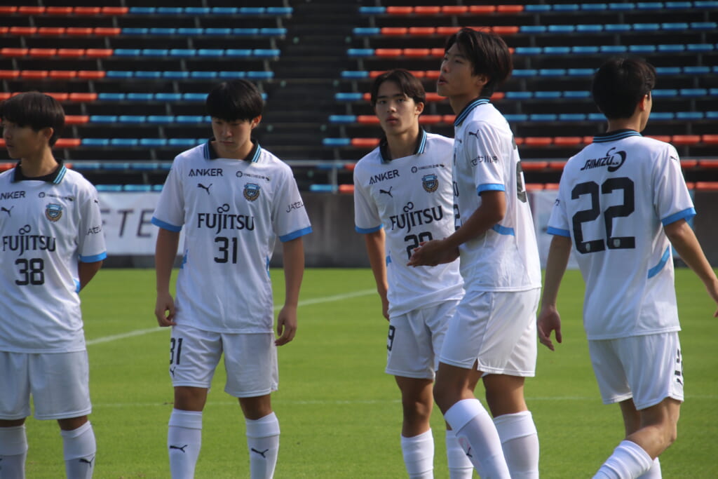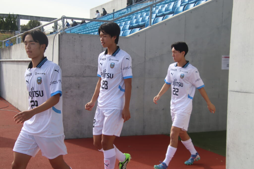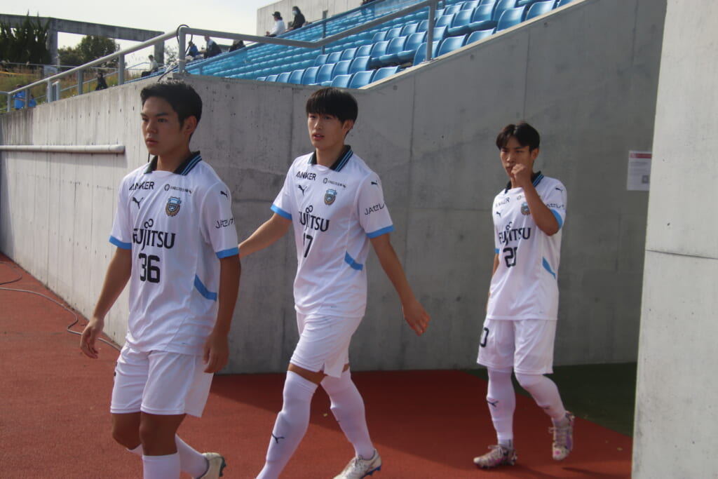 Jユースカップには「2026年4月1日において満年齢18歳以下の選手はFP3名/GK1名まで試合エントリー可能」というオーバーエイジ枠や、トップチームへの昇格が内定している選手は、2名までエントリーが可能という規定があるなどしており、トップへの昇格が内定しているGKの小川と、林、児玉、梅田、宗田の計5人の3年生が先発に名前を連ねました。