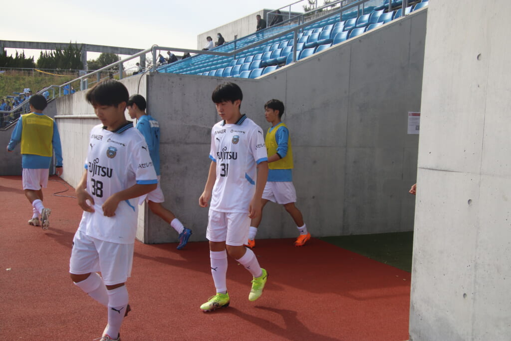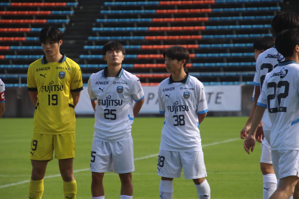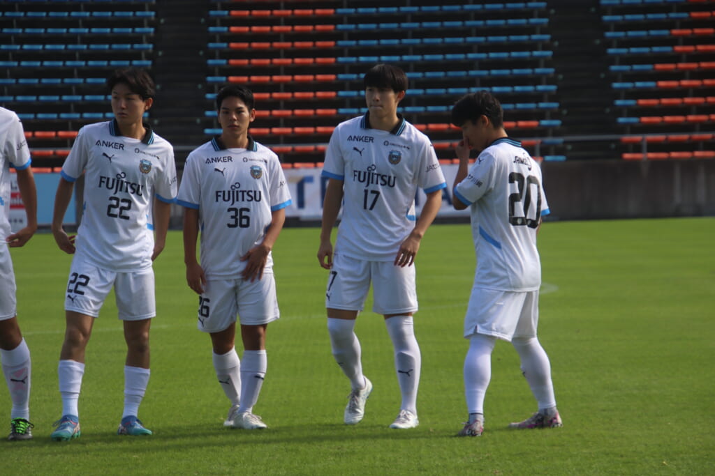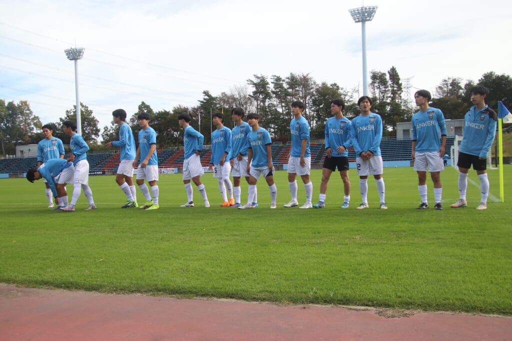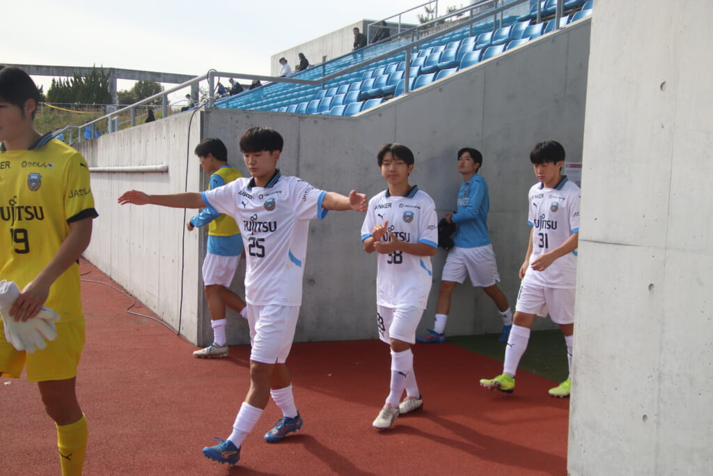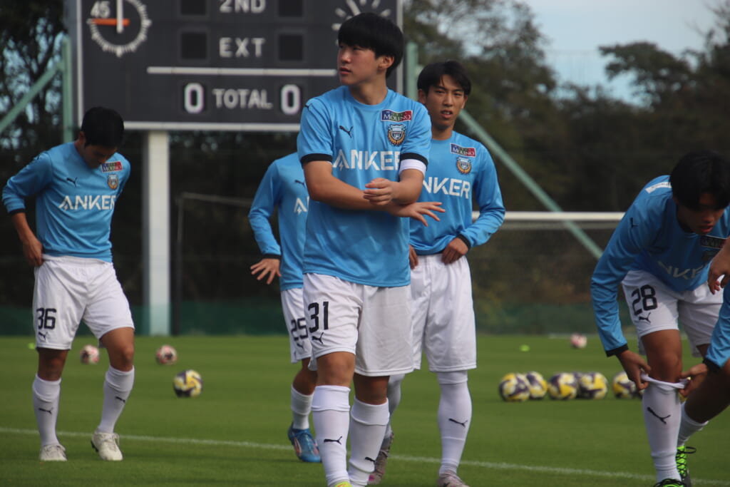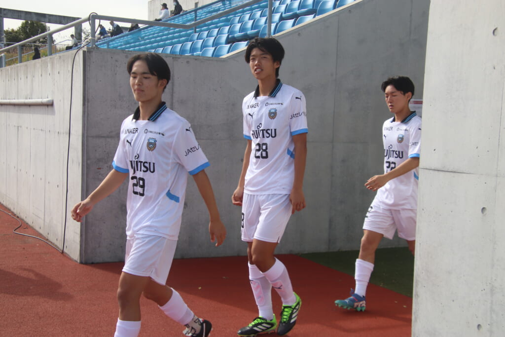 Jユースカップには「2026年4月1日において満年齢18歳以下の選手はFP3名/GK1名まで試合エントリー可能」というオーバーエイジ枠や、トップチームへの昇格が内定している選手は、2名までエントリーが可能という規定があるなどしており、トップへの昇格が内定しているGKの小川と、林、児玉、梅田、宗田の計5人の3年生が先発に名前を連ねました。