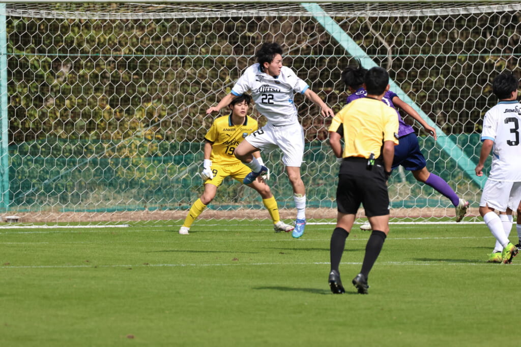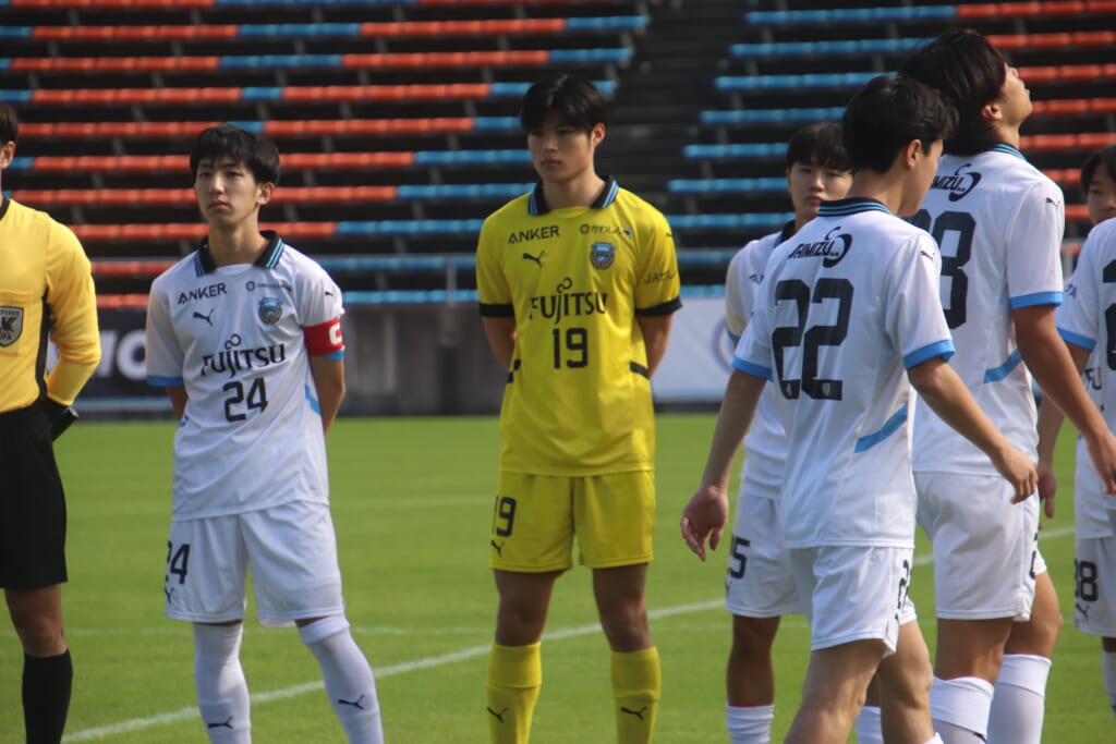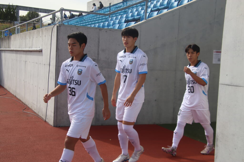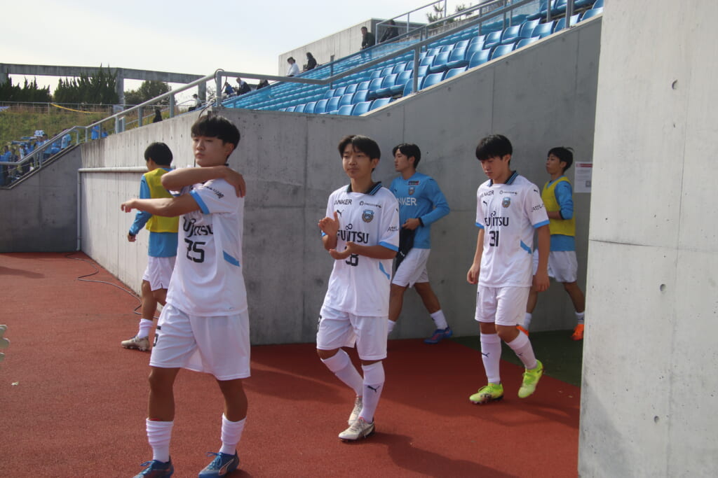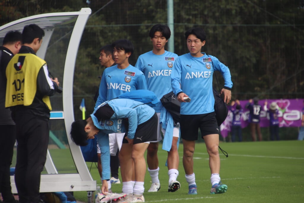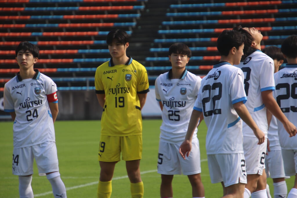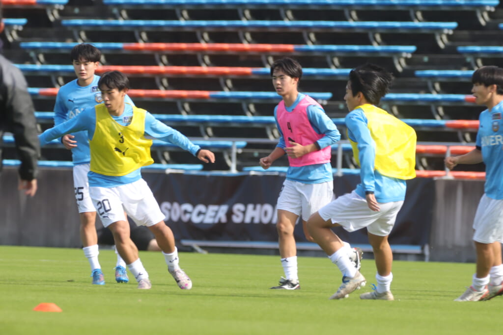 Jユースカップには「2026年4月1日において満年齢18歳以下の選手はFP3名/GK1名まで試合エントリー可能」というオーバーエイジ枠や、トップチームへの昇格が内定している選手は、2名までエントリーが可能という規定があるなどしており、トップへの昇格が内定しているGKの小川と、林、児玉、梅田、宗田の計5人の3年生が先発に名前を連ねました。