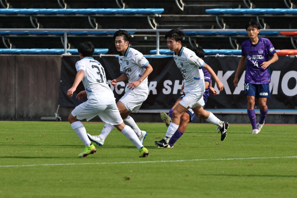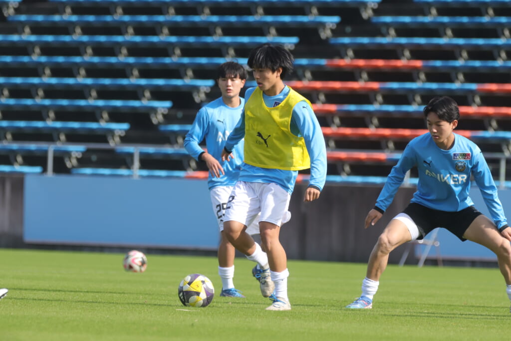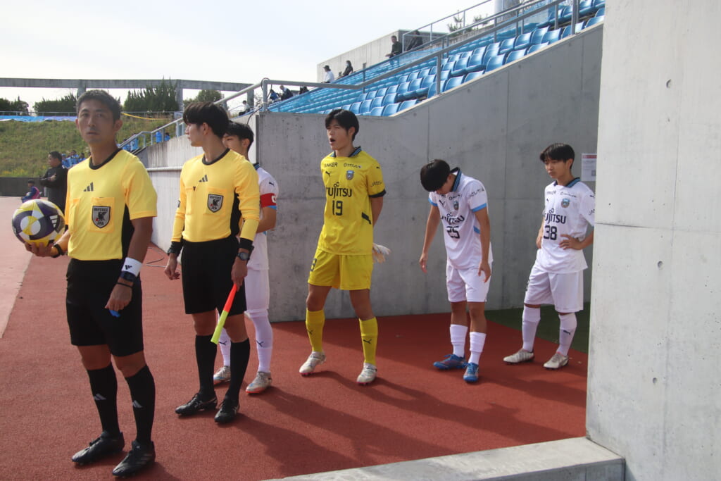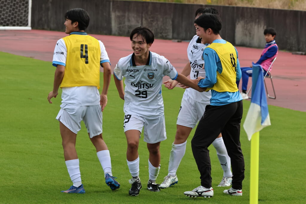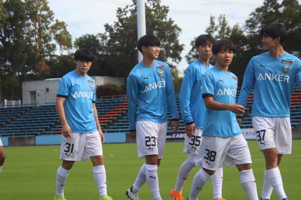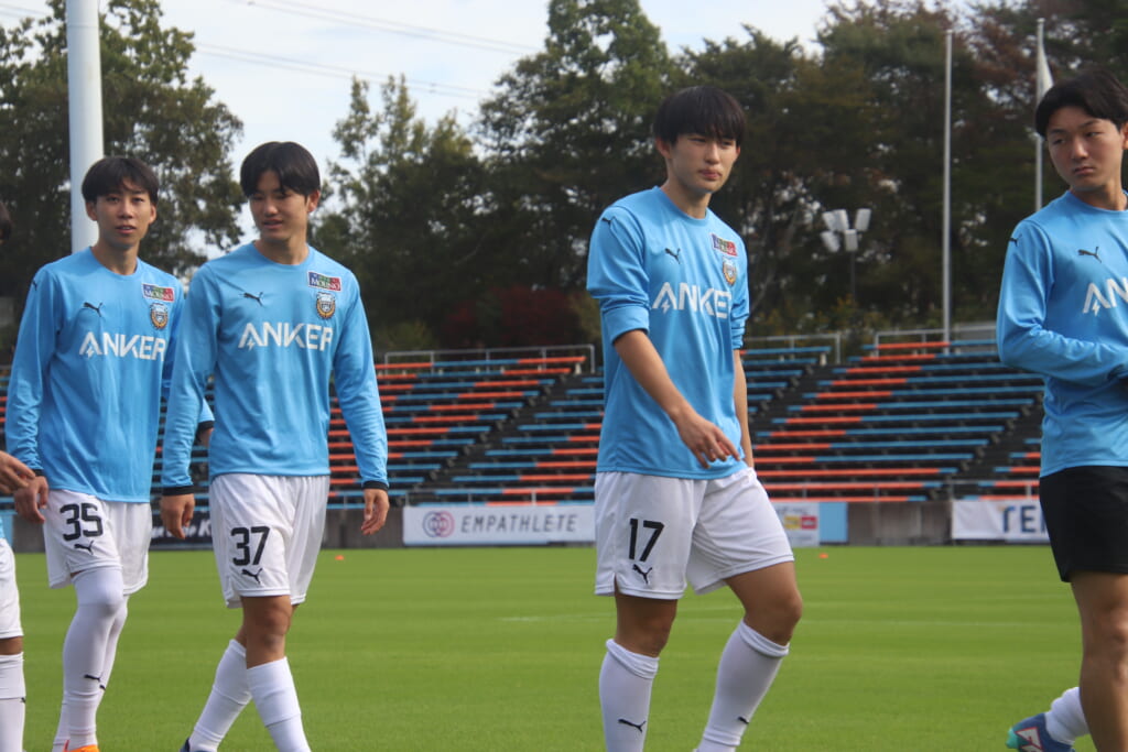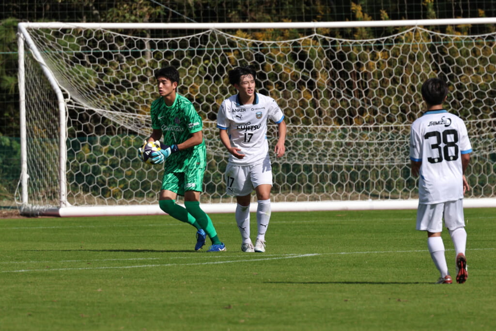 Jユースカップには「2026年4月1日において満年齢18歳以下の選手はFP3名/GK1名まで試合エントリー可能」というオーバーエイジ枠や、トップチームへの昇格が内定している選手は、2名までエントリーが可能という規定があるなどしており、トップへの昇格が内定しているGKの小川と、林、児玉、梅田、宗田の計5人の3年生が先発に名前を連ねました。