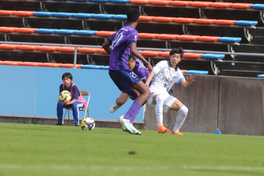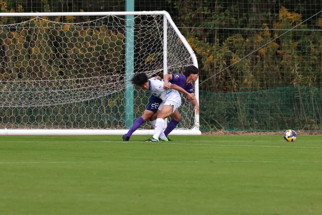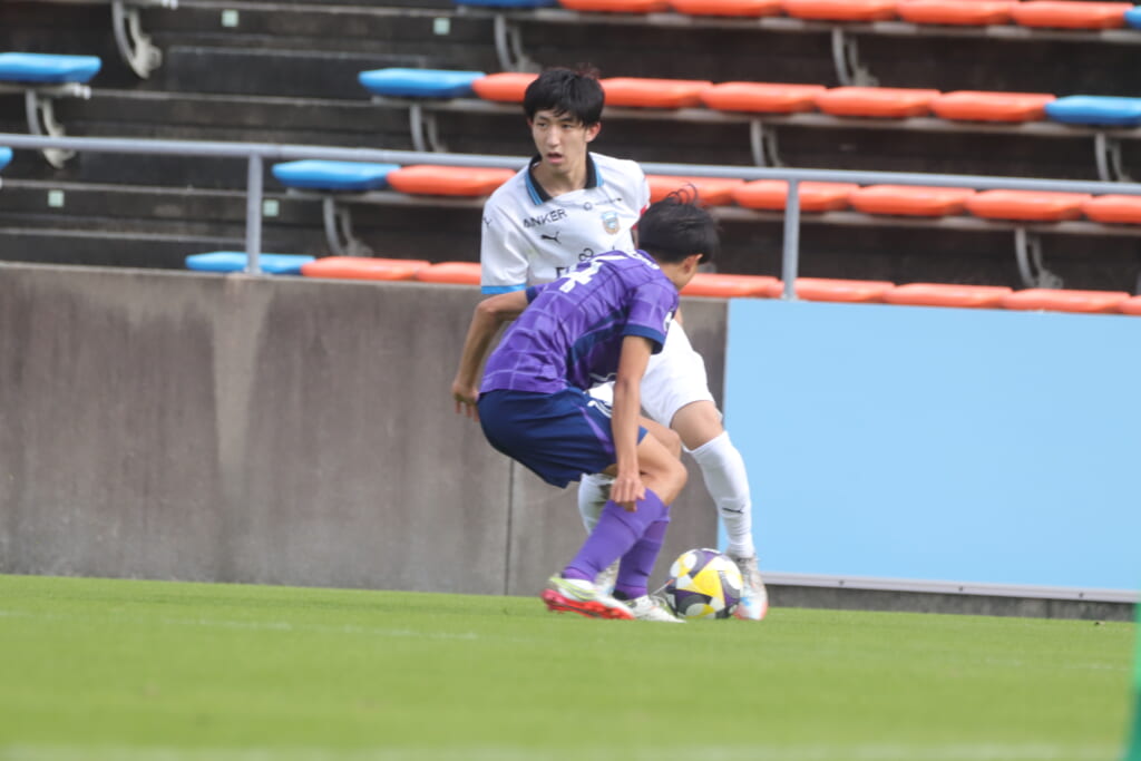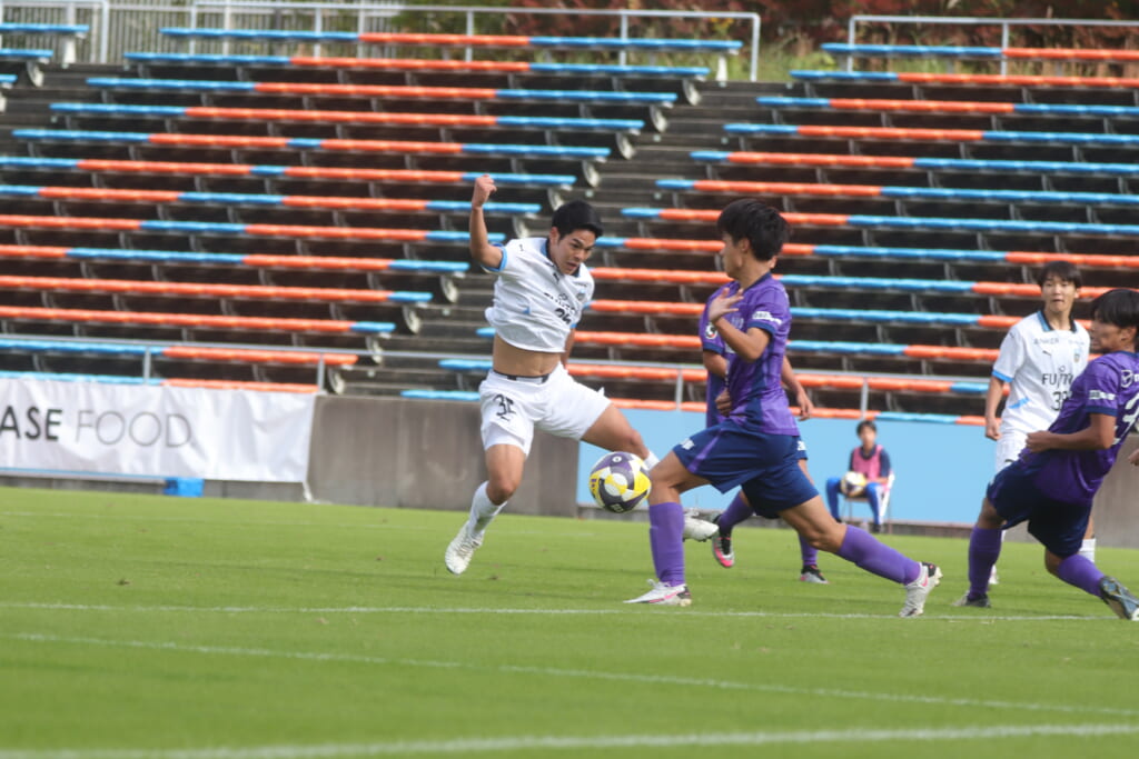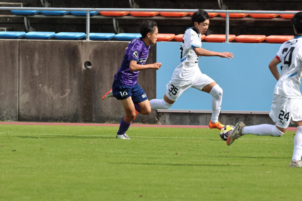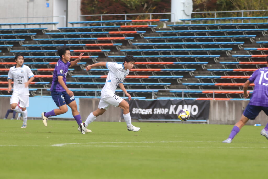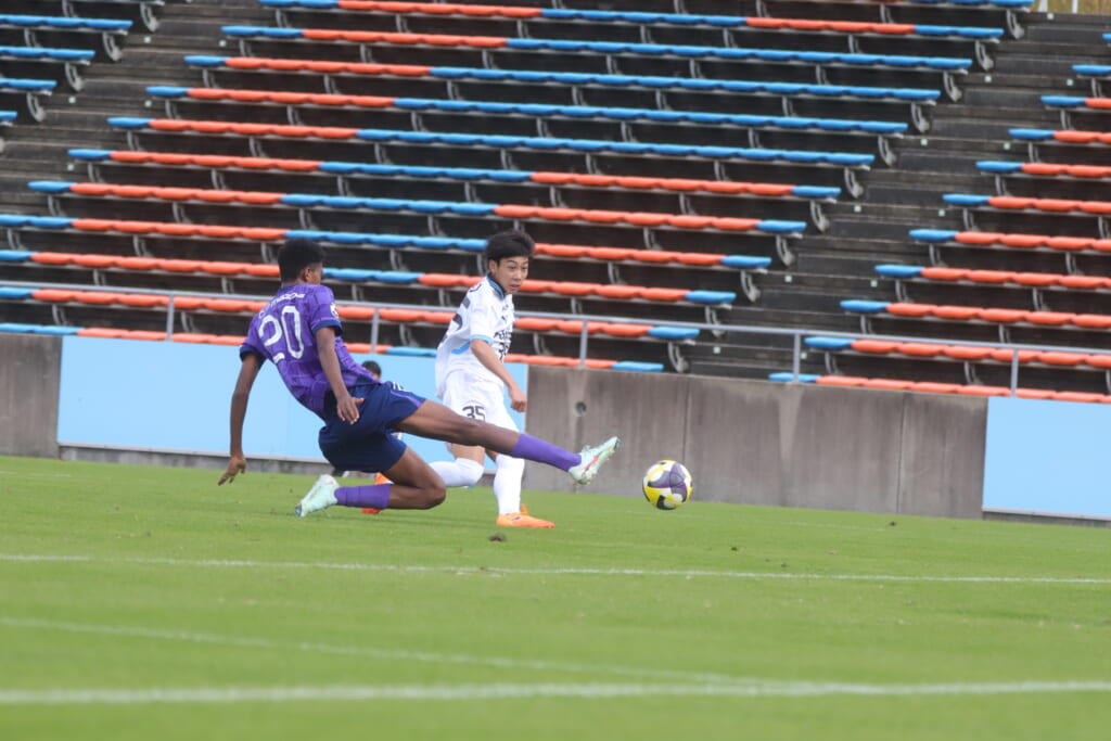さらに41分には、笹倉が前に持ち出し、間を突く縦パス。三上が抜け出しますが、森井が厳しく寄せ、前に行くことはできず。