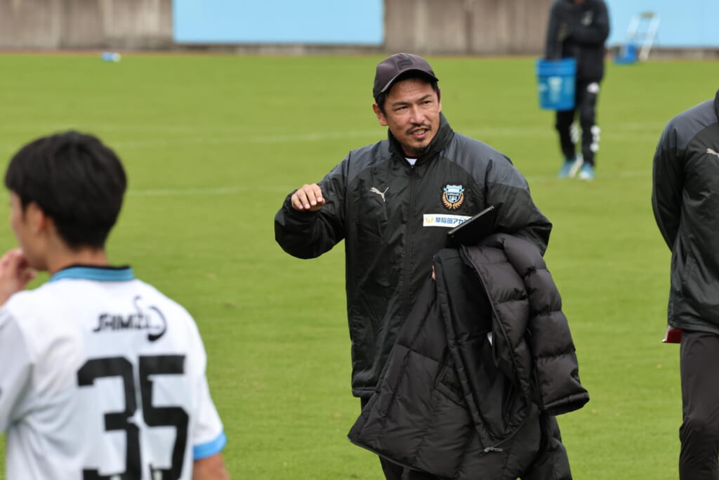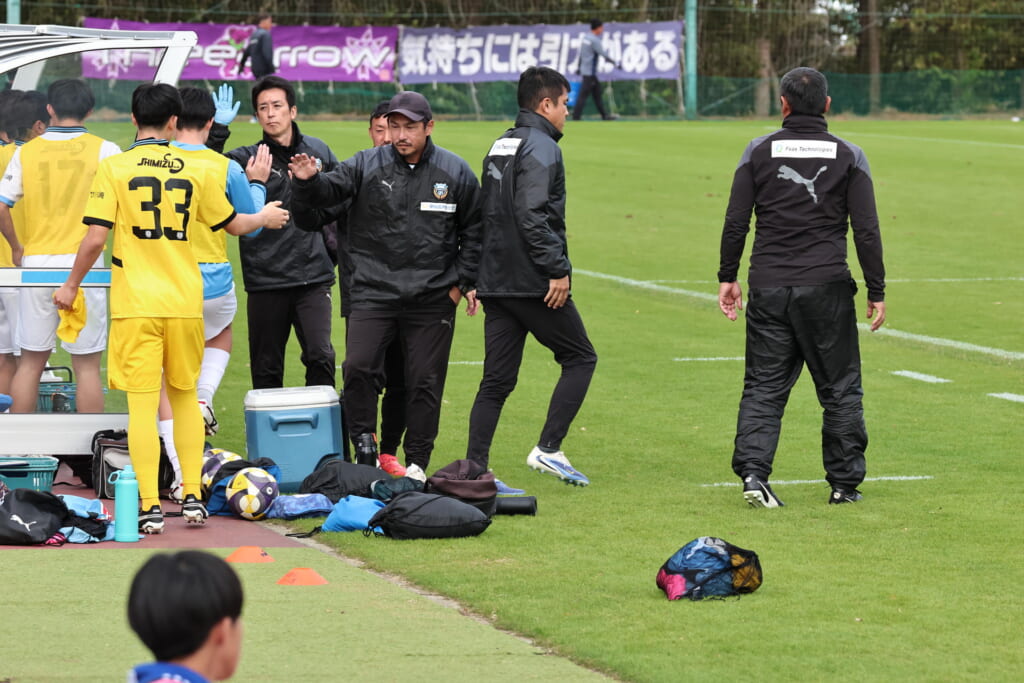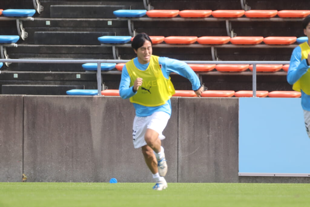 39分には、右へ開いた山川の斜めのパスを、中央で今廣が受け、左サイド、高い位置を突くパス。三上が抜け出しますが、オフサイド。