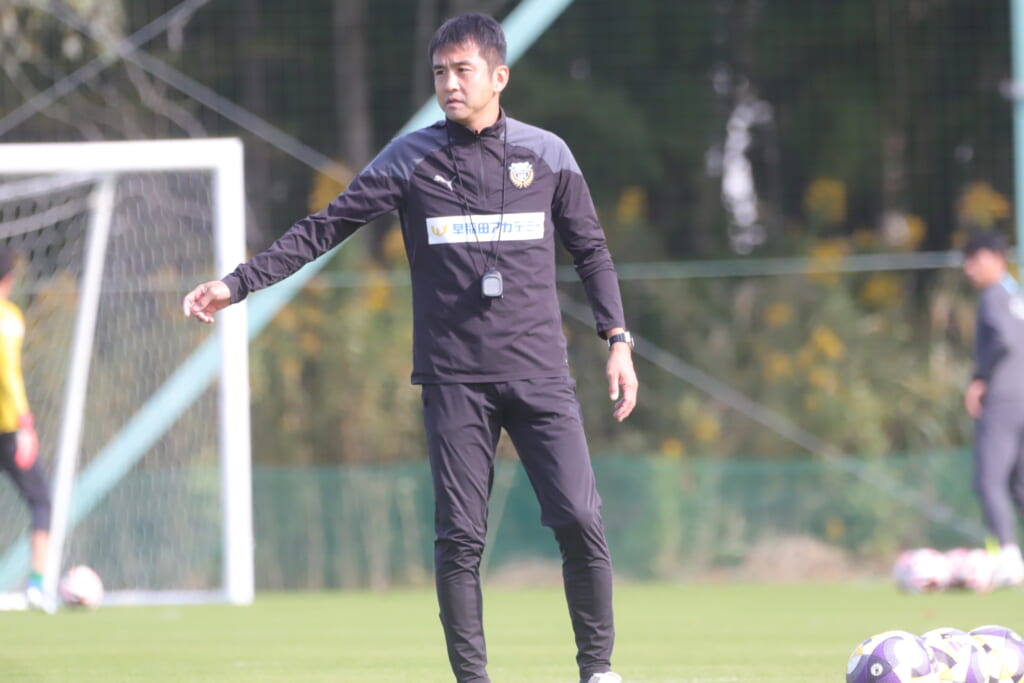 小田や加藤がやや低い位置でかかわり、笹倉へ。笹倉のパスを中央でうまく受けた加藤は縦パス。全が抜け出しそうになりますが、サンフレッチェはカットしていきます。