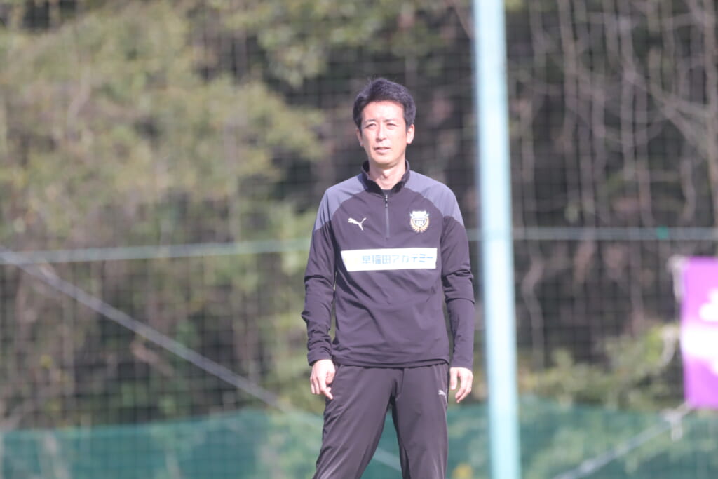 フィードに、宗田が高い位置への動き出しを見せていきますが、長崎が対応していきます。