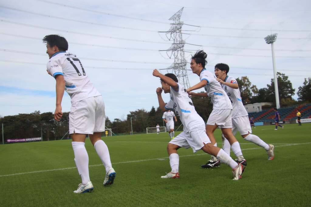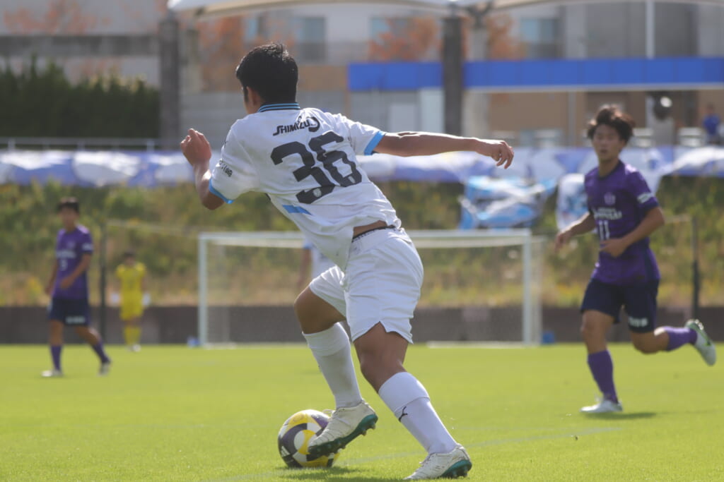 36分にはさらに中央で廣瀬、全とつながり、全のパスに抜け出した三上がエリア外左へ。三上はクロスを入れていきますが、これは得点にはつながらず。