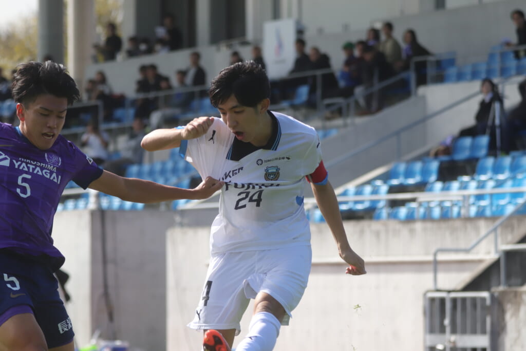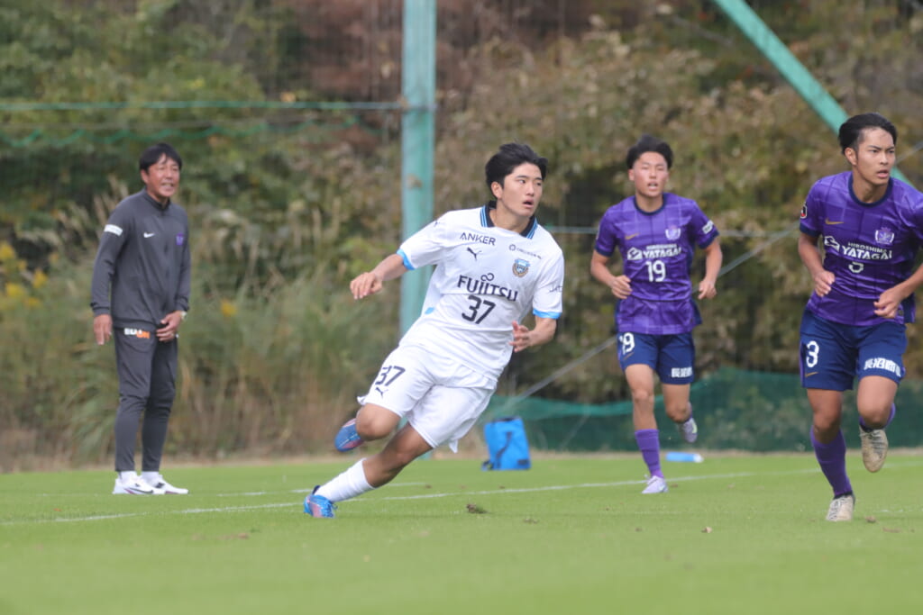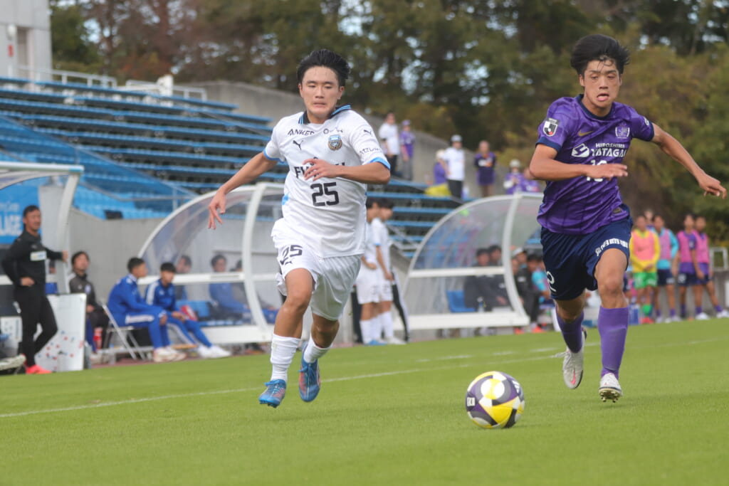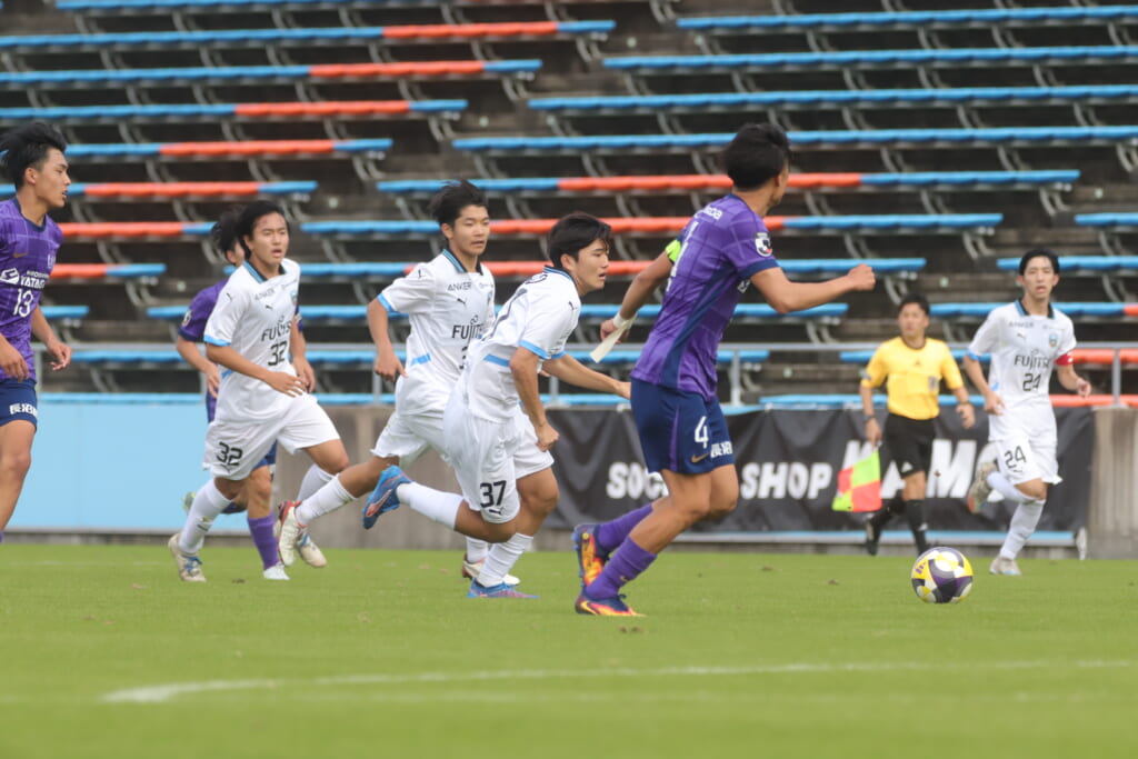 Jユースカップは準々決勝を迎え、川崎フロンターレU-18はサンフレッチェ広島F.Cユースとの試合に臨みました。