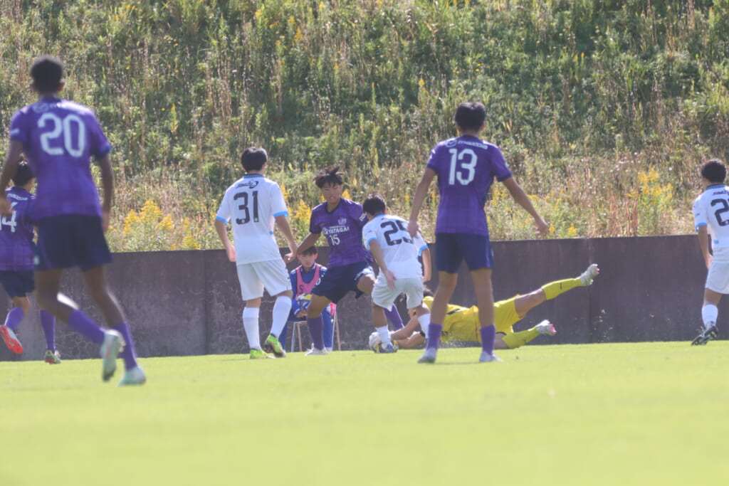 45分には、左サイド、木村がクロス。十河がエリア内へ飛び出しますが、GK小川煌がセーブ。