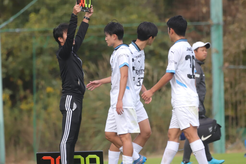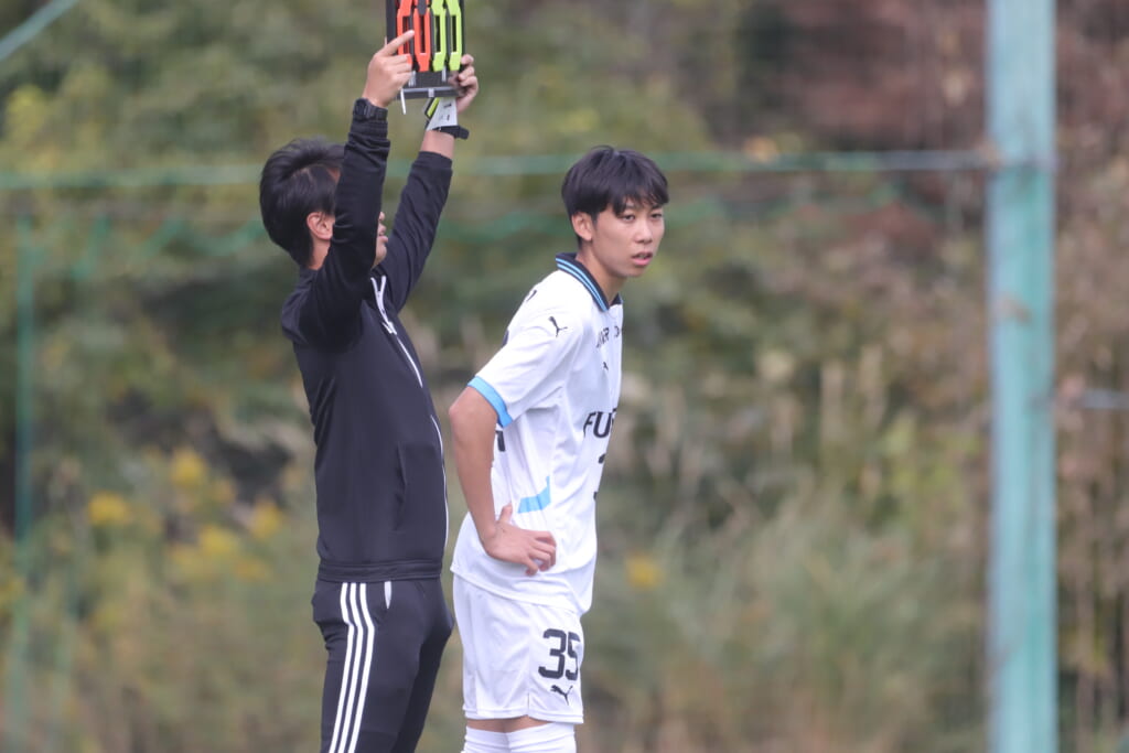 12分フロンターレは三上に代わり35木村風斗が左MFに。