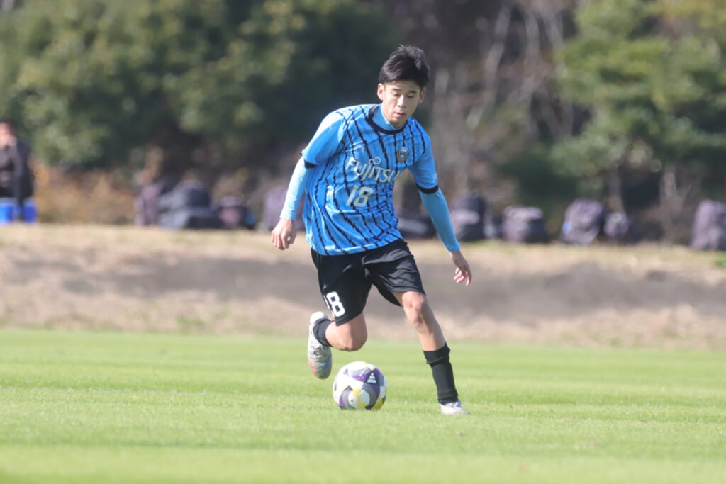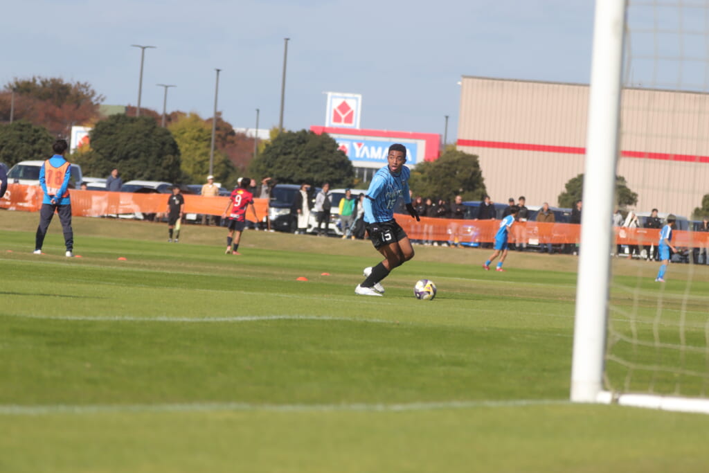 攻撃に転じたフロンターレ等々力は、遠山煌斗のパスに渡部泰地が右サイド、高い位置へ。