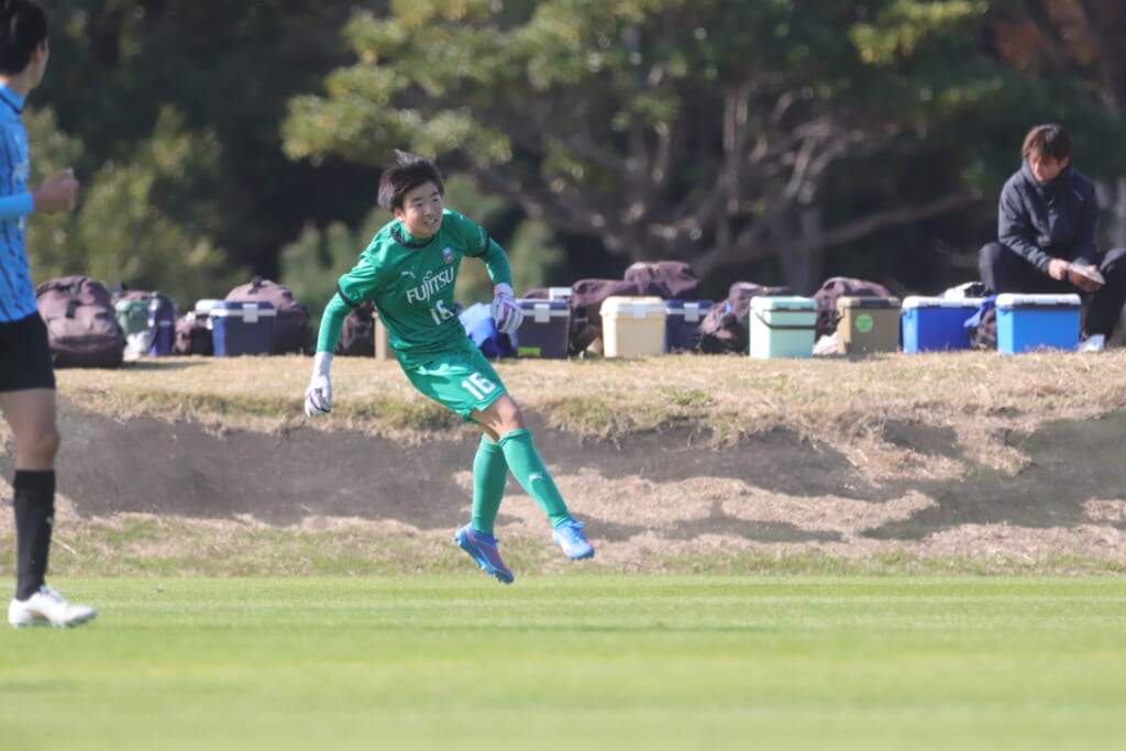 フロンターレ等々力は、33分、中央、坂西のパスに、小嶋が正面へ。うまい動き出しを見せますが、オフサイド。