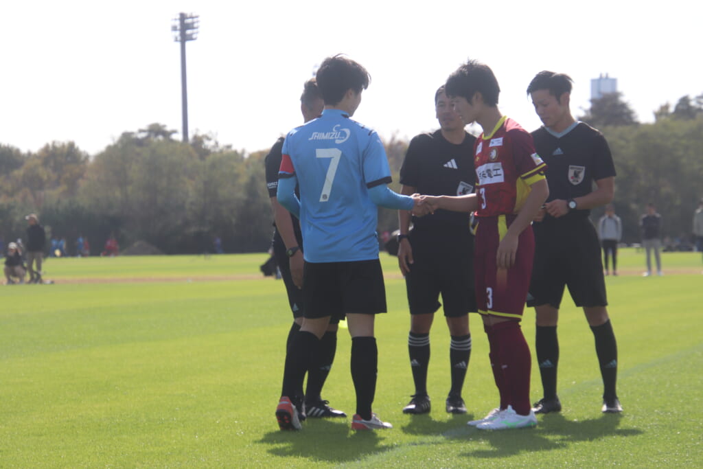 先発は、GK21増田大然、最終ラインは右から14岩崎壮希、2高橋心丸、5鈴木幸成、4佐藤裕十、ボランチは12伏木叶、7石川蒼、右MF10飯塚亮太、左MF9久保偉央吏、前線には3野手翔ノ介、11高橋琉夏。