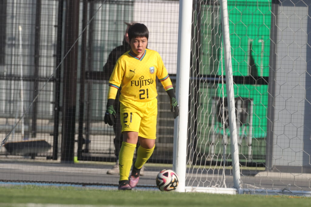それでも、宮本がすぐさま戻り、前には行かせず。自分たちのボールにし、そこからボールをつないでいくフロンターレは、髙桑や宮本がうまくつないでいき、中央、髙桑のパスに芳賀が右サイド、高い位置へ。バディーSCもそれに対し、しっかり対応し、チャンスにはつながりませんでしたが、自分たちでしっかり動かして、前に出る時間をつくっていきます。