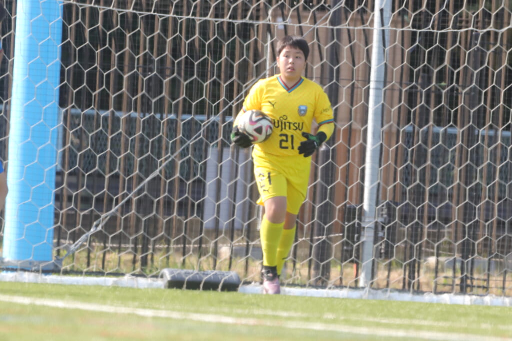 13分には、フロンターレ、山口のパスを間で受けた福原。山口との連係から正面へ。シュートはGK1がセーブ。