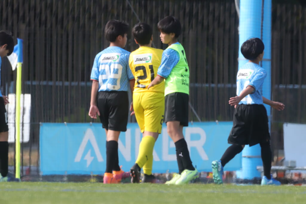 第3ピリオド、フロンターレはGK21望月心琉、最終ラインは右から25長野優斗、15芳賀廣人、24田口理欧斗、中央に29山口堂真、右に23髙桑湊人、左に14宮本櫂、前線には9福原暖太。