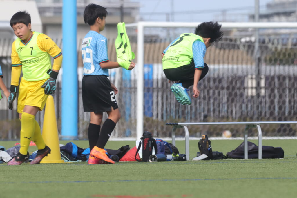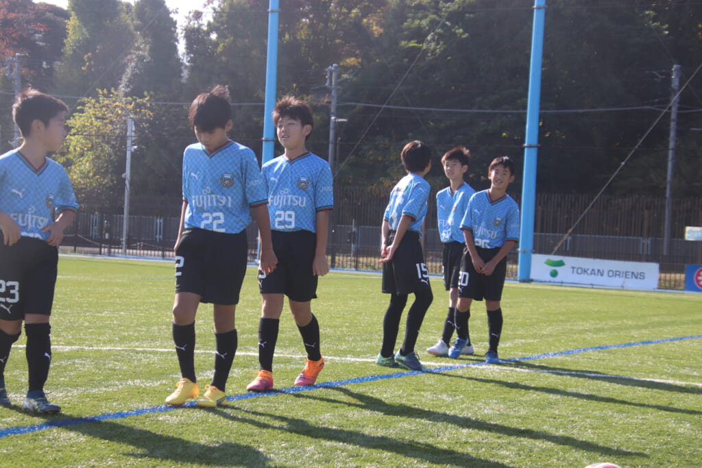 長谷工プレミアリーグに臨んだ川崎フロンターレU-12の5年生たちは、バディーSC戦に続いて、東住吉SCとの試合に臨みました。