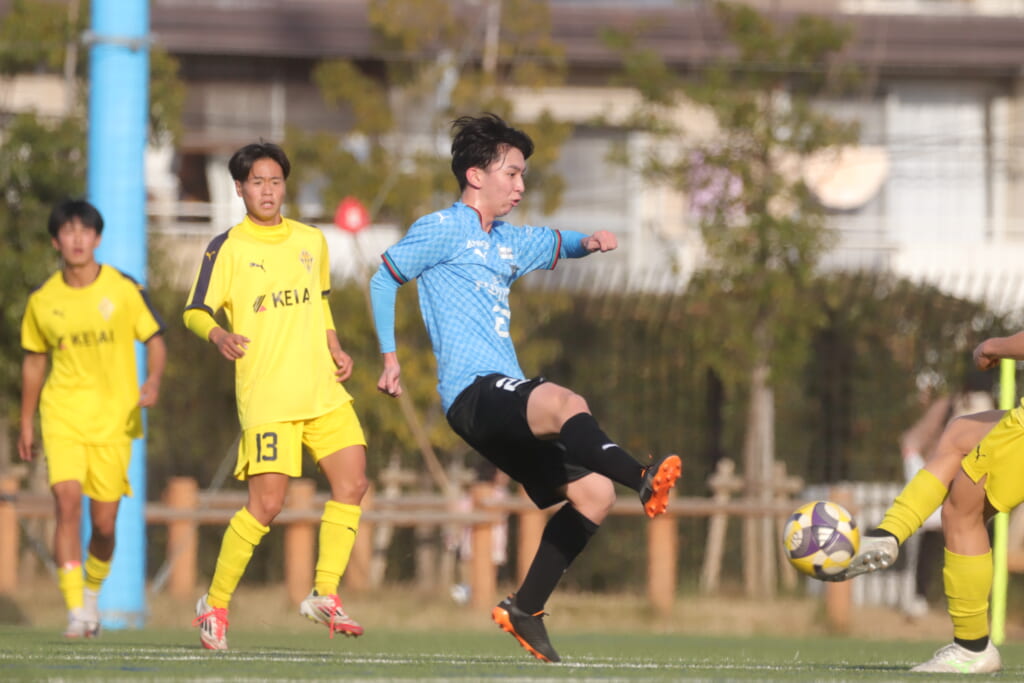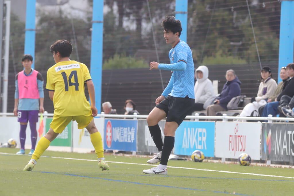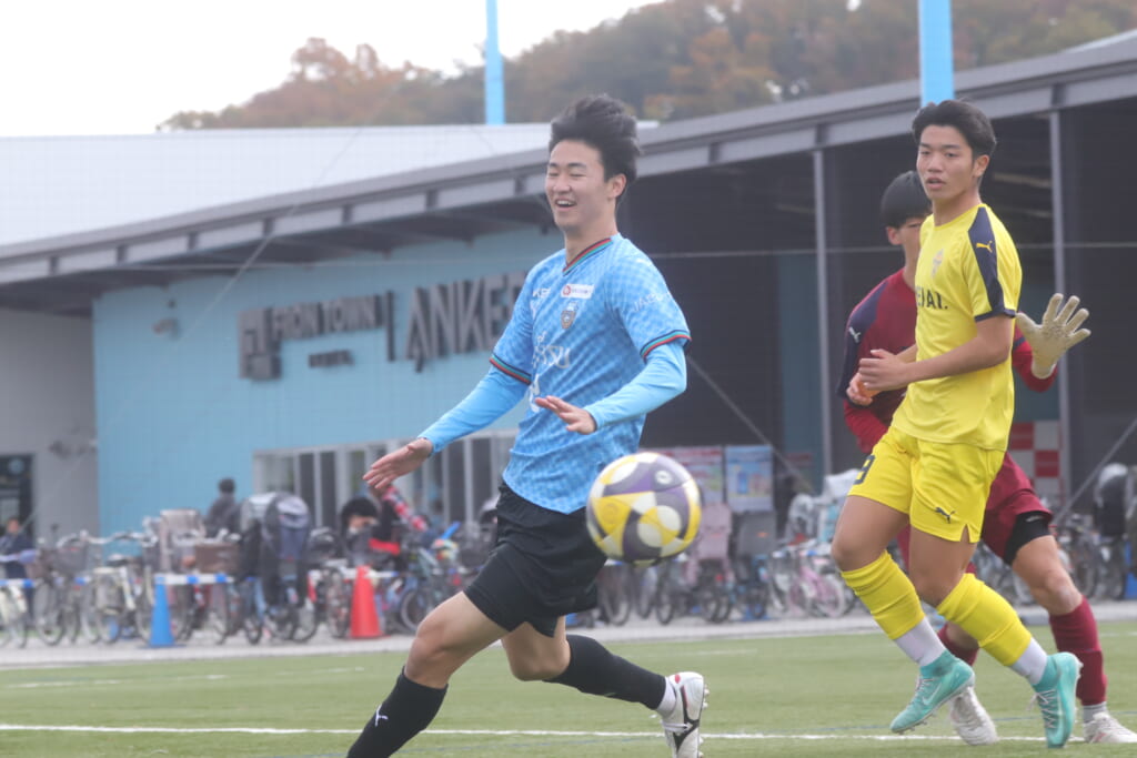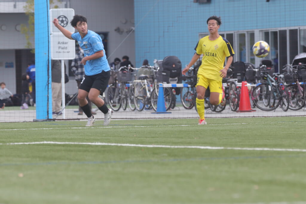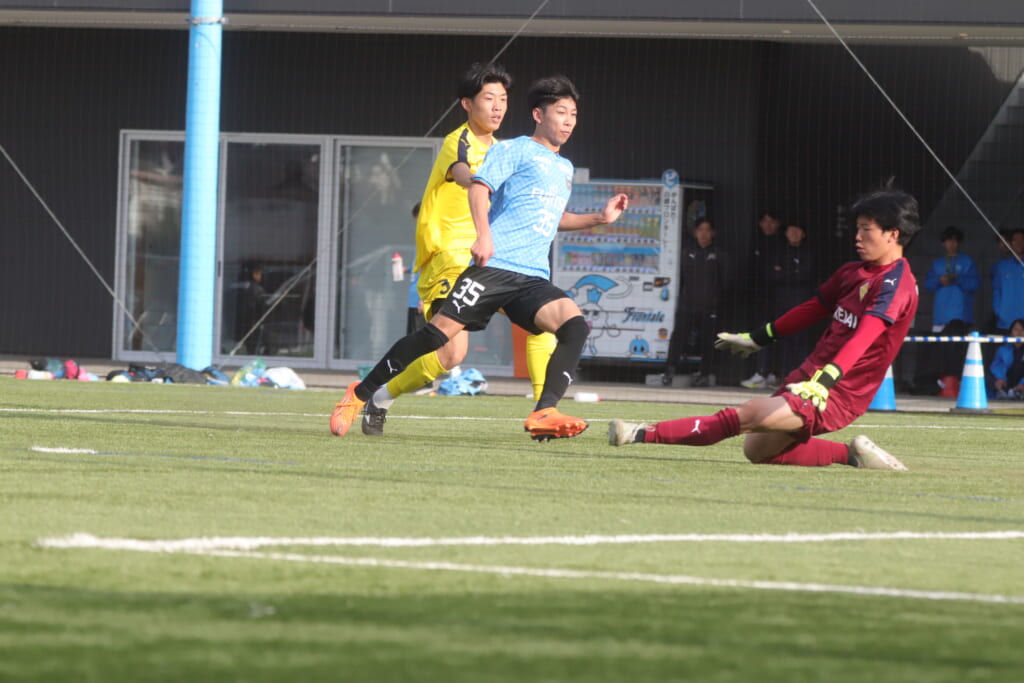西武台高校も直後には、浮き球のパスに10が正面へ。しかし、笹倉が対応。セカンドボールは全が拾い、再び自分たちのボールにしたフロンターレ。