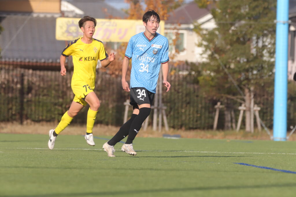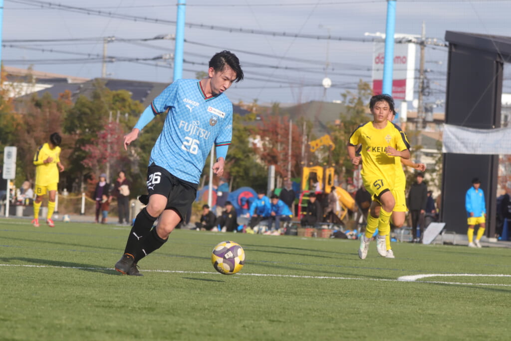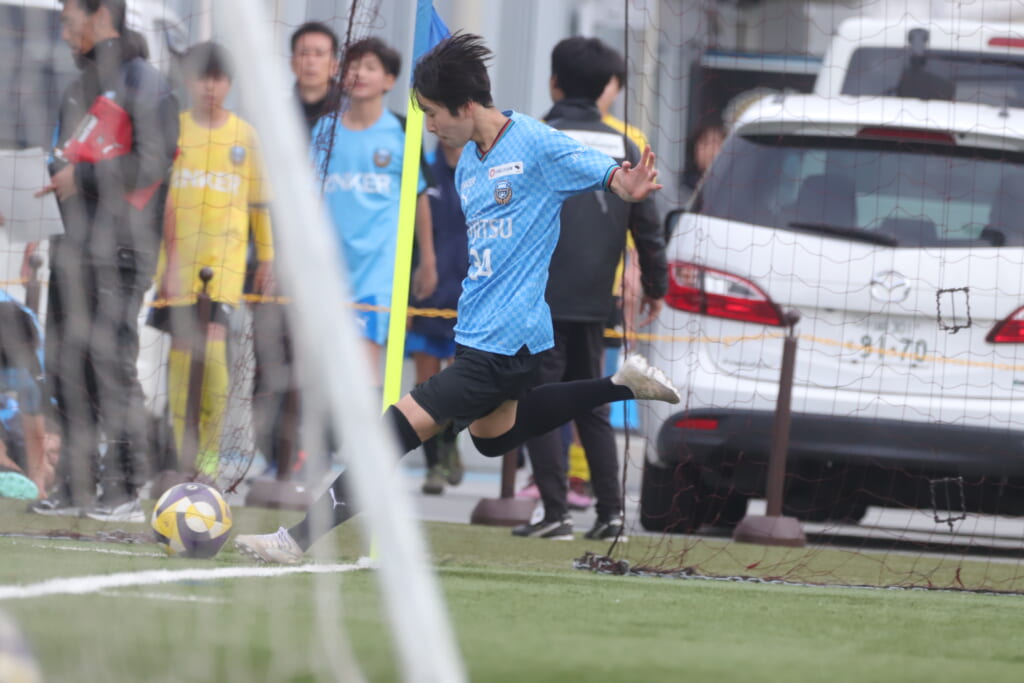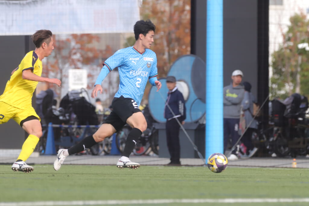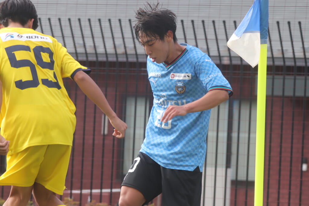 抜け出した川西から受け直した武内がクロス。左サイドへ流れたボールを拾った関が前に持ち込み、フロンターレの左コーナーキックに。