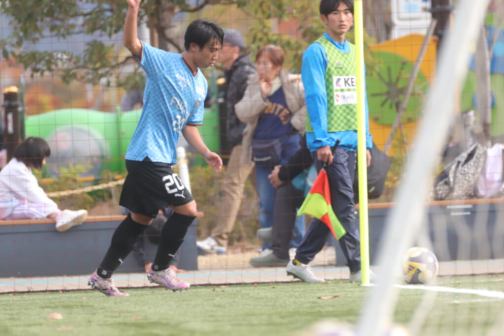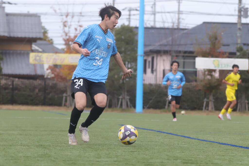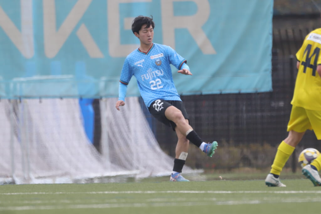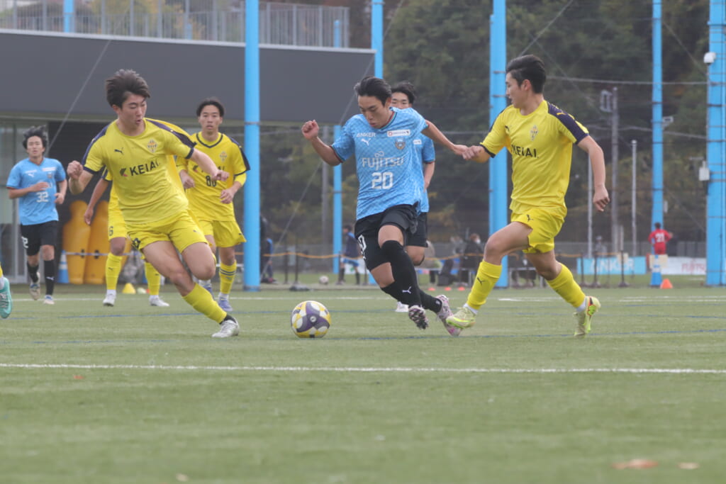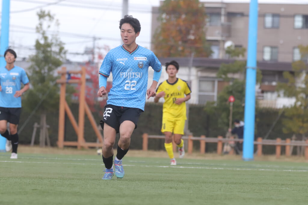 抜け出した川西から受け直した武内がクロス。左サイドへ流れたボールを拾った関が前に持ち込み、フロンターレの左コーナーキックに。
