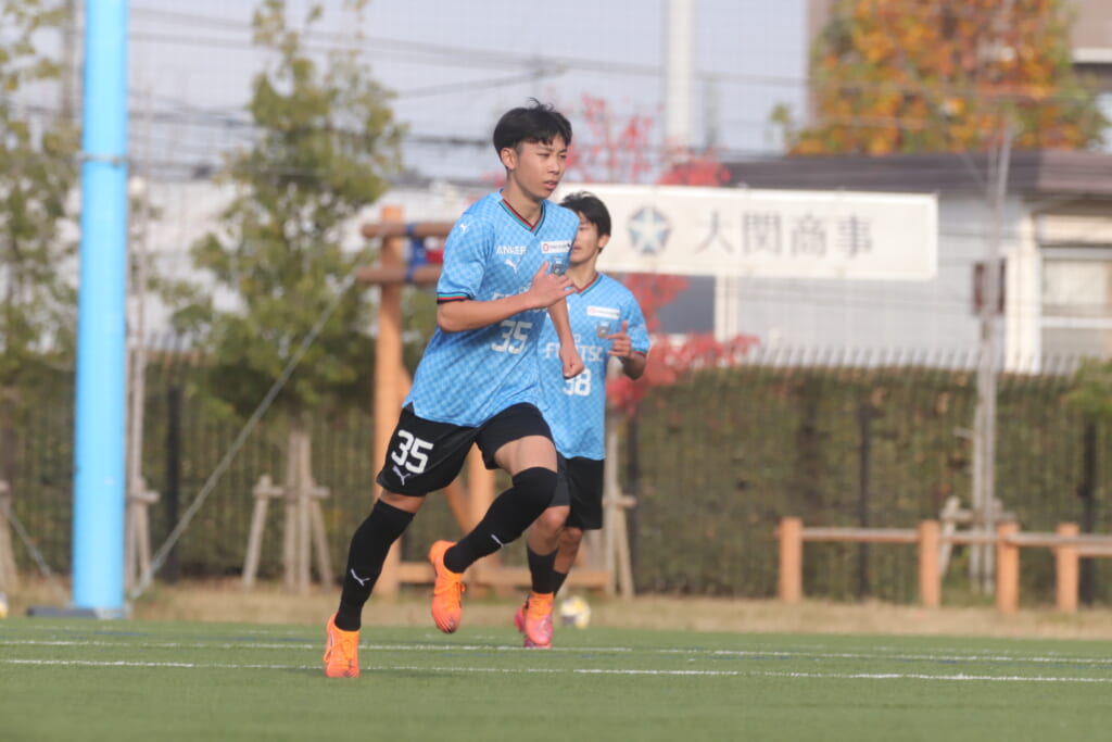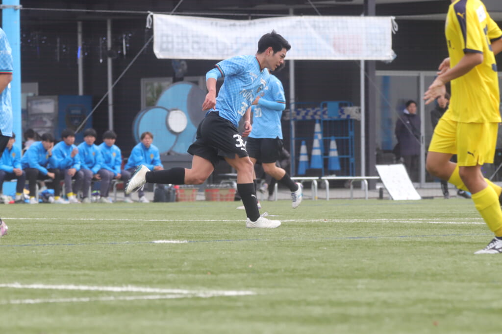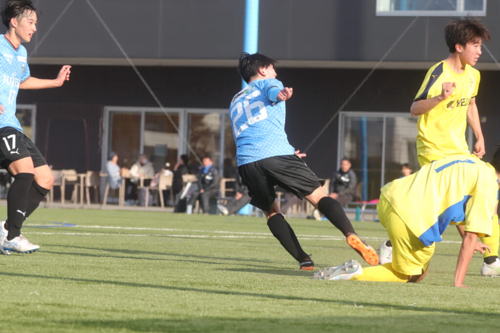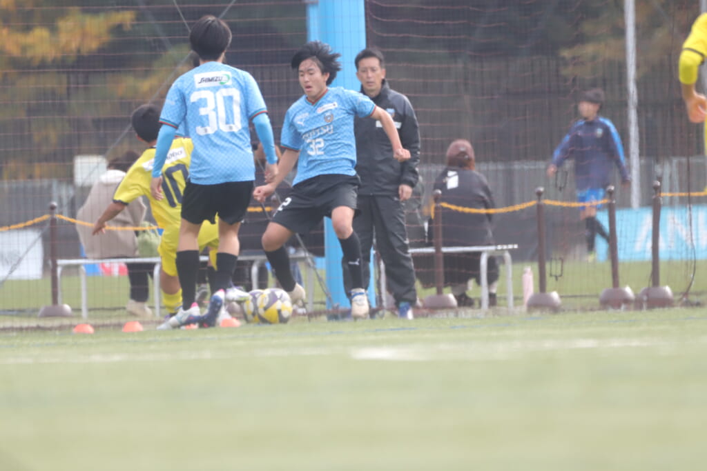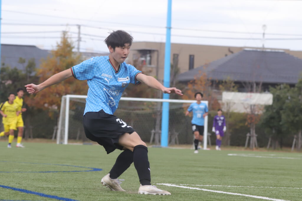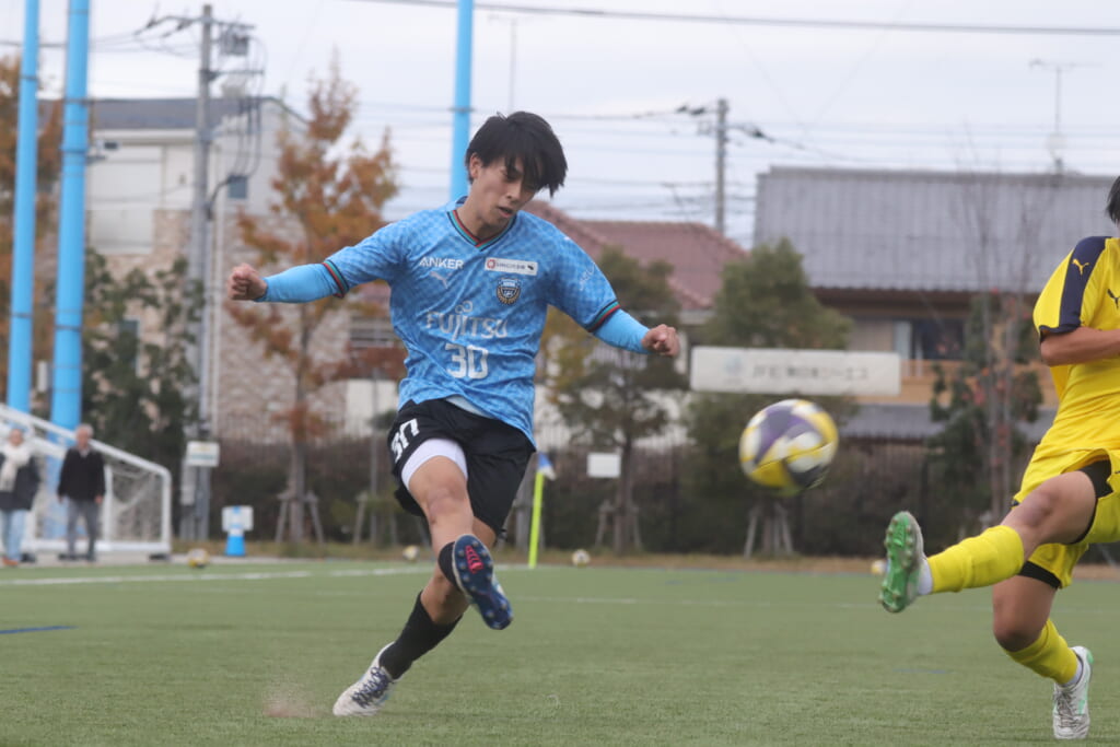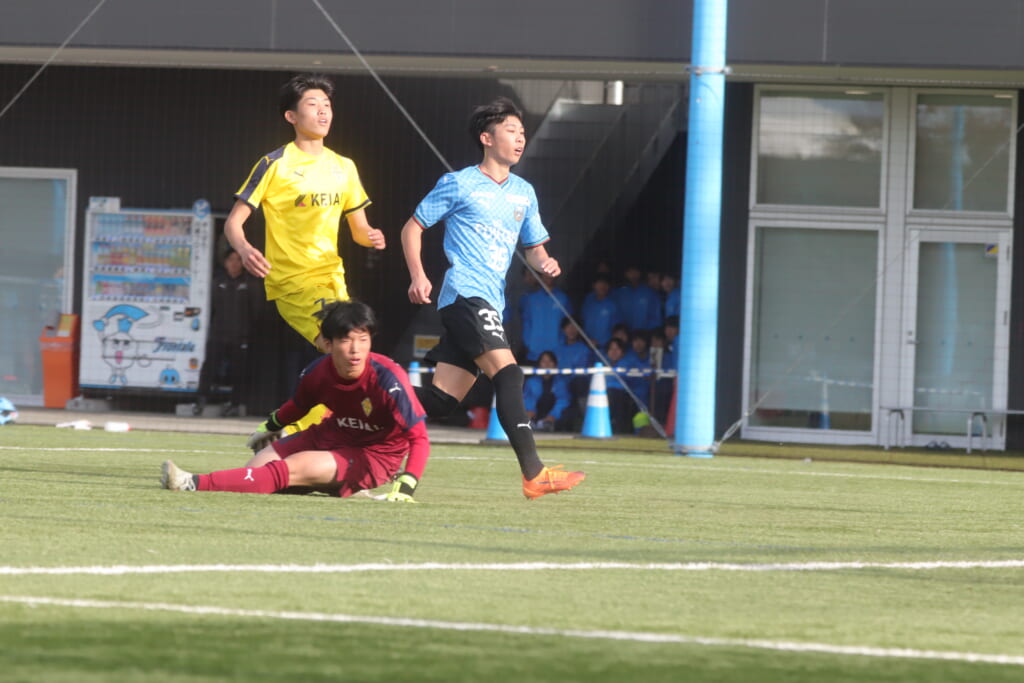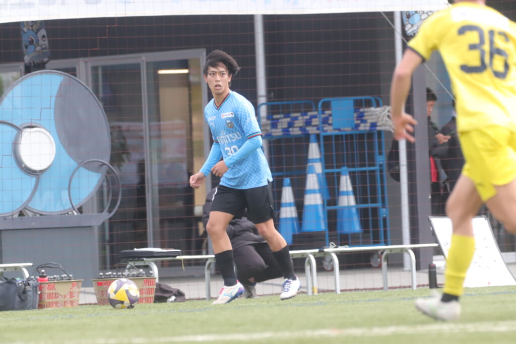 すると29分には、フロンターレ、岡本からペイシェンスと最終ラインでつなぎ、ペイシェンスから受けた関はフィード。抜け出した廣瀬がおさめ、右サイドへ展開すると武内のパスに川西が高い位置へ。川西はエリア右へ持ち込んでいき、折り返すと正面でシュートを打ったのは山川。これが決まり、3-0。