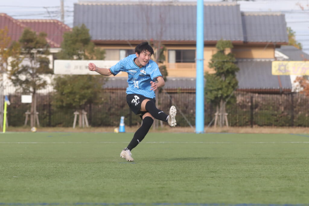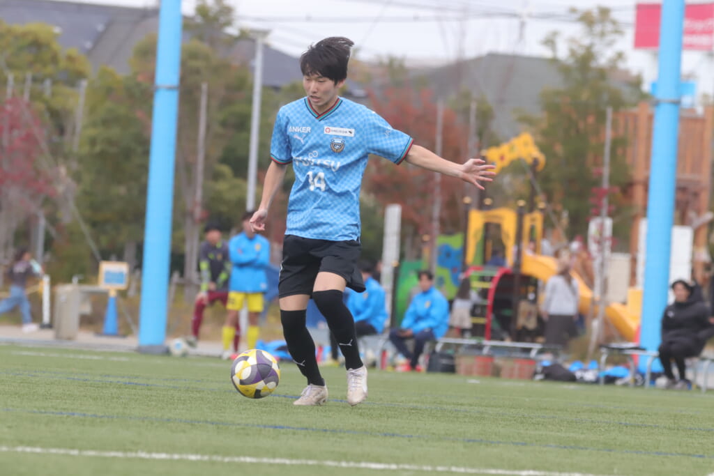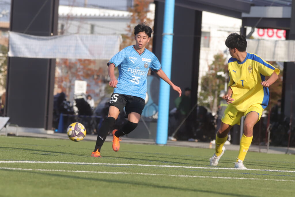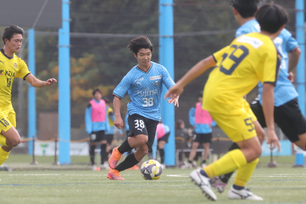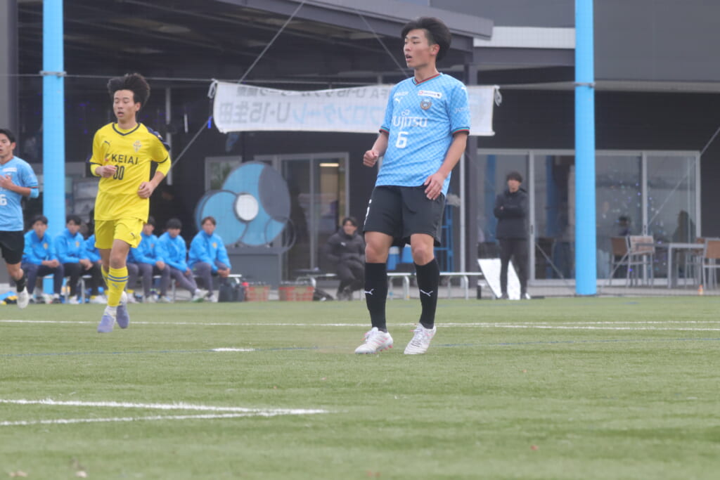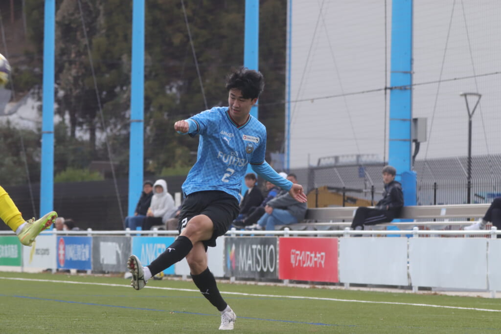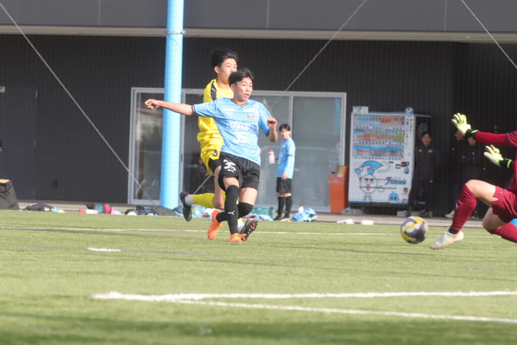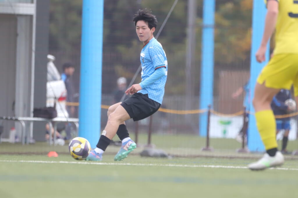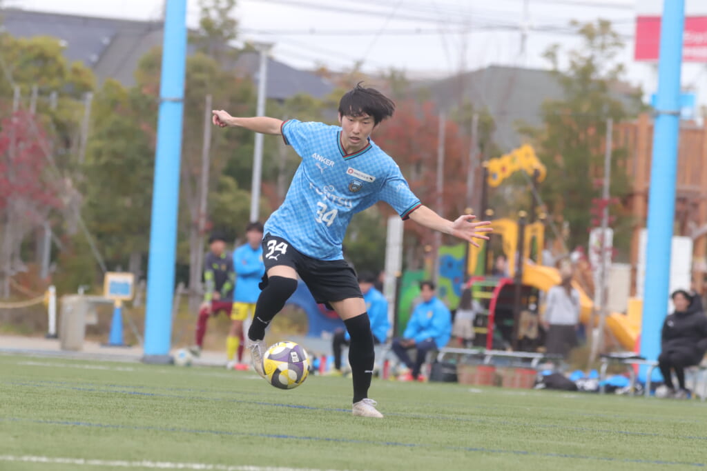 すると29分には、フロンターレ、岡本からペイシェンスと最終ラインでつなぎ、ペイシェンスから受けた関はフィード。抜け出した廣瀬がおさめ、右サイドへ展開すると武内のパスに川西が高い位置へ。川西はエリア右へ持ち込んでいき、折り返すと正面でシュートを打ったのは山川。これが決まり、3-0。