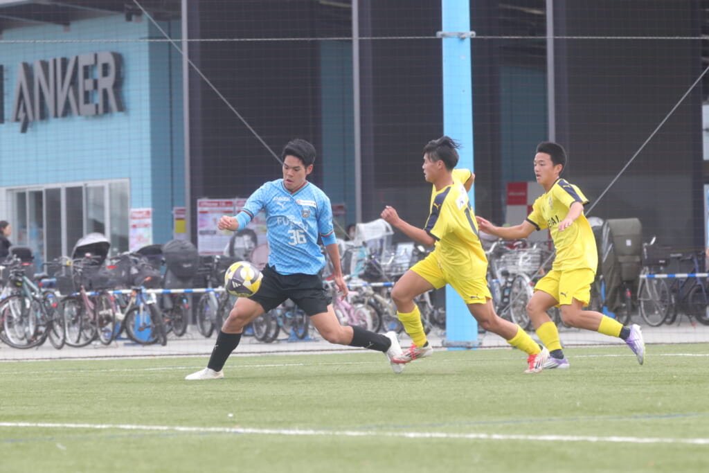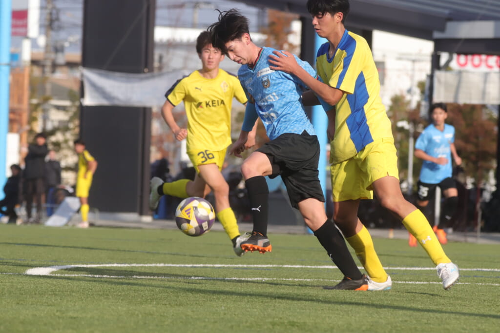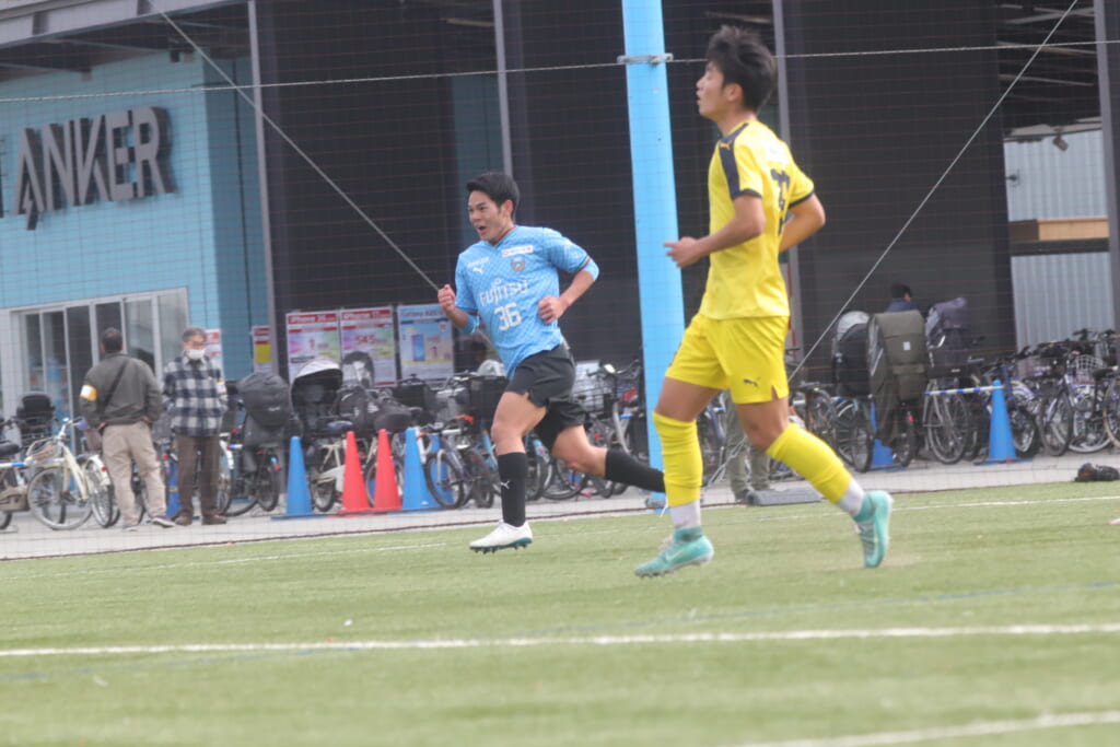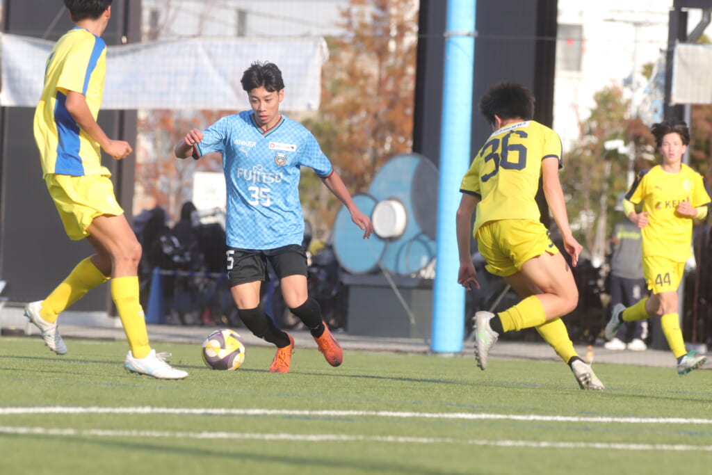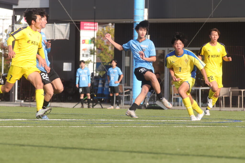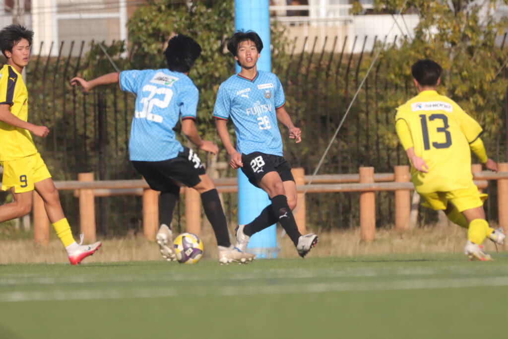 さらにフロンターレは三上が中央へ持ち込み、加藤、関、全が左サイドでかかわり、その流れから加藤が左サイド、高い位置へ顔を出すなど、西武台高校の陣内でプレー。