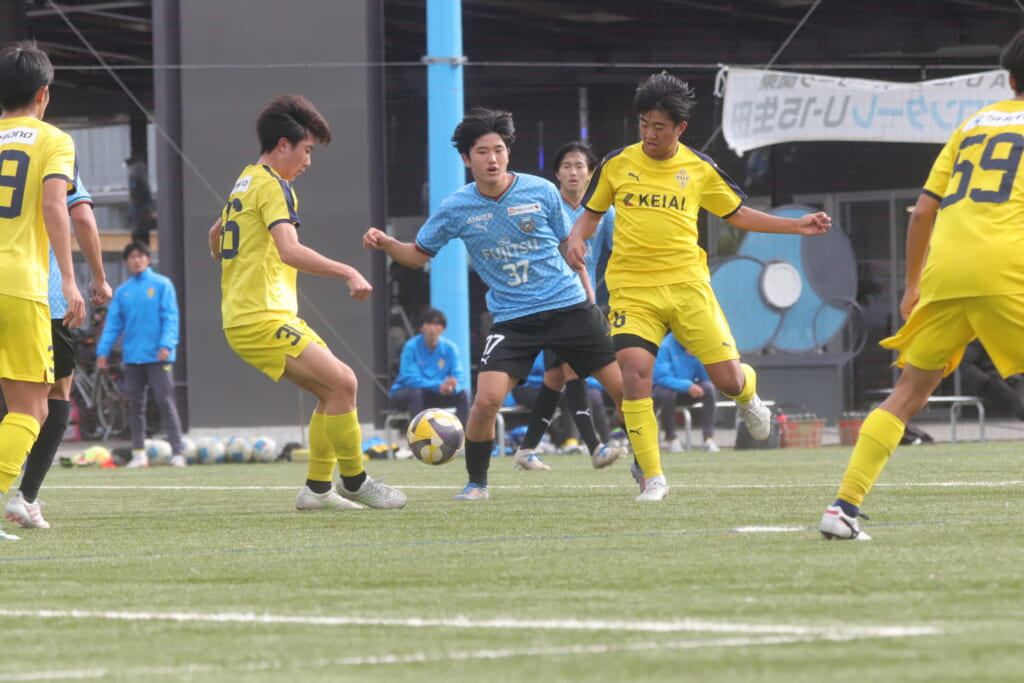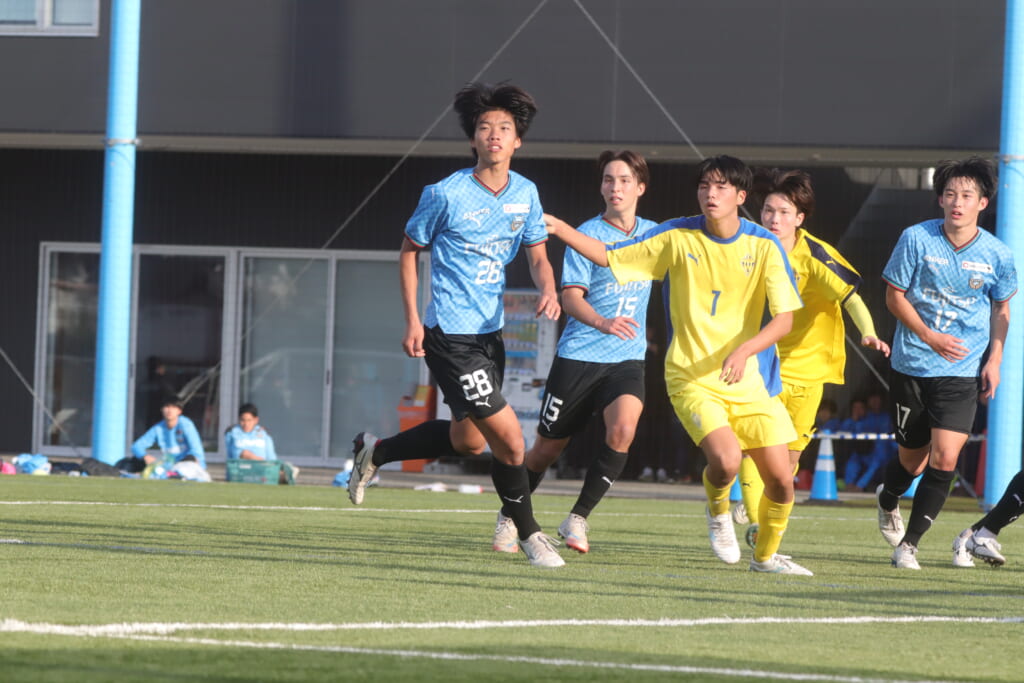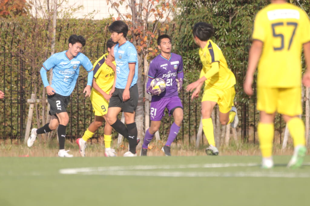 ゴールへ迫る場面をつくるフロンターレでしたが、西武台高校も粘り強い守りを見せていきます。