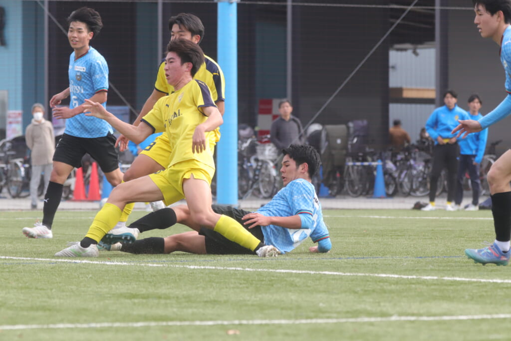西武台高校もそこを狙い、カット。前に持ち込もうとしてきますが、セカンドボールを全が回収していきます。