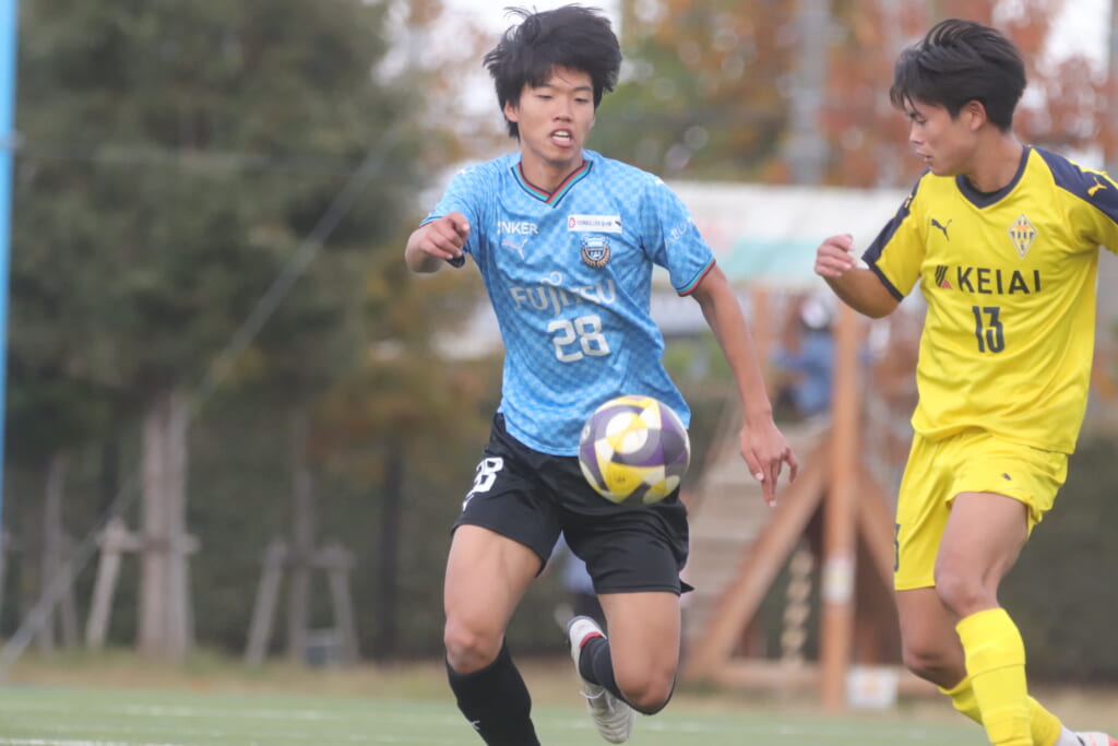 40分には、間で受けた三上から左サイド、開いた関へ。関のパスに藤井がエリア左へ。ここは西武台高校のカバーに遭い、シュートを打つことはできませんでしたがいい連係に。