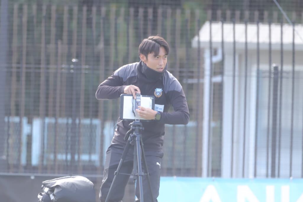 GKの浅野が中央、福原へつけ、菊地へ菊地が中央へ持ち込み、左サイド、野上へ。野上のパスに、一関が左サイド、高い位置をうかがうなど、さらに前に出る姿勢を見せていくフロンターレ。