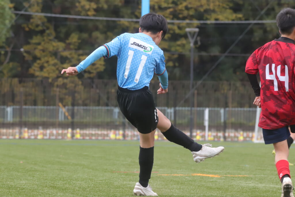 8分には、さらにフロンターレ、右サイド、高い位置へ抜け出した浅野がクロス。FC大泉学園がブロックしたところ、こぼれ球を拾ったフロンターレは、再び浅野が右クロス。