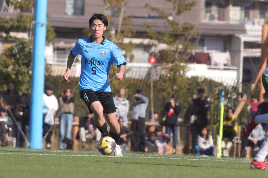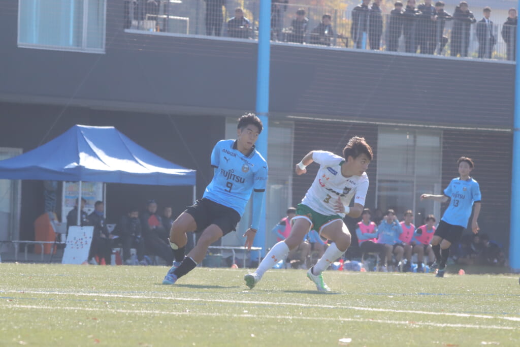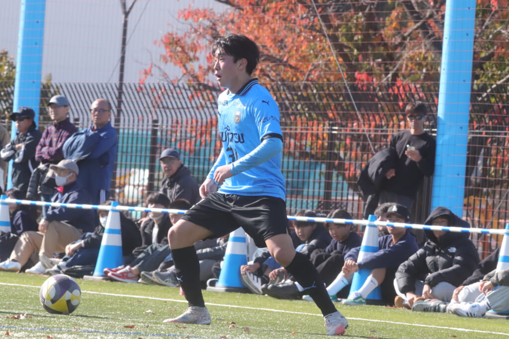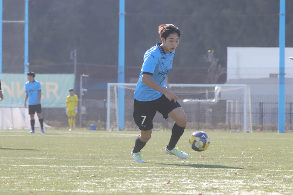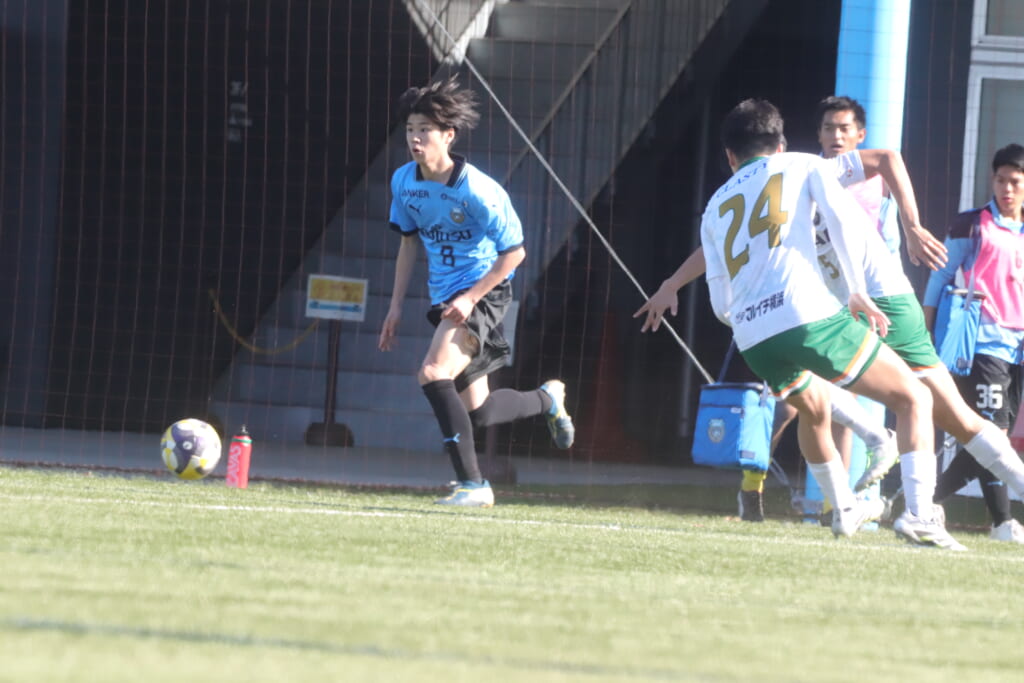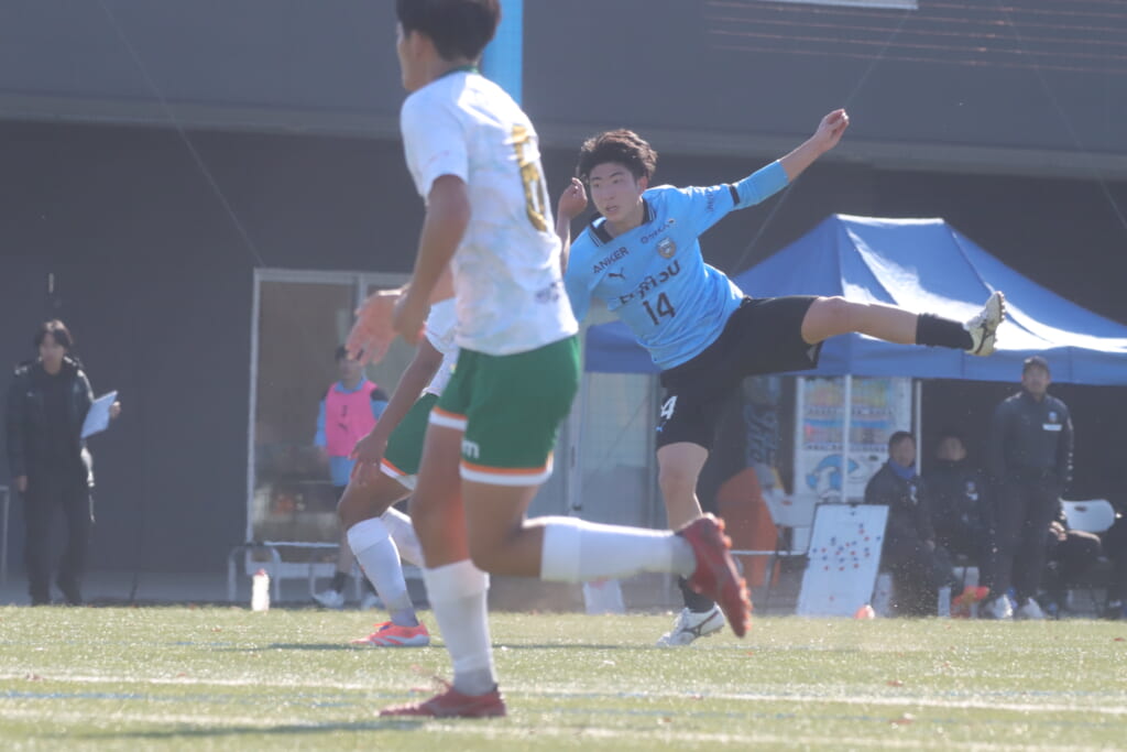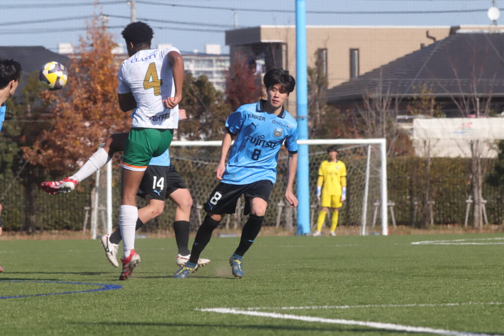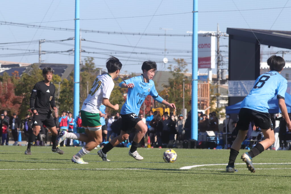 さらにフロンターレは、楠田、藤田に小川尋斗が間で受けながら、ボールを動かす時間をつくり、11分には、小川尋斗のパスに抜け出した柏村が右クロスを上げるも青森山田はクリア。